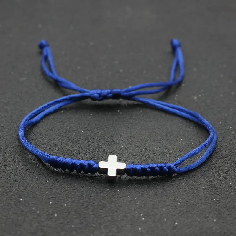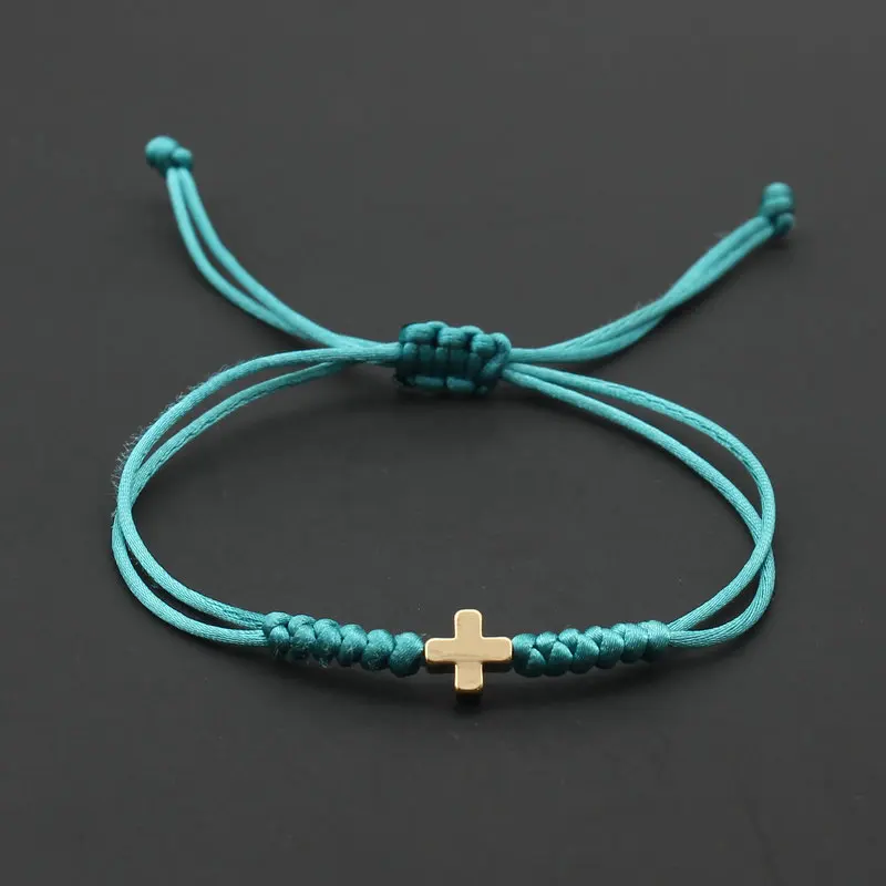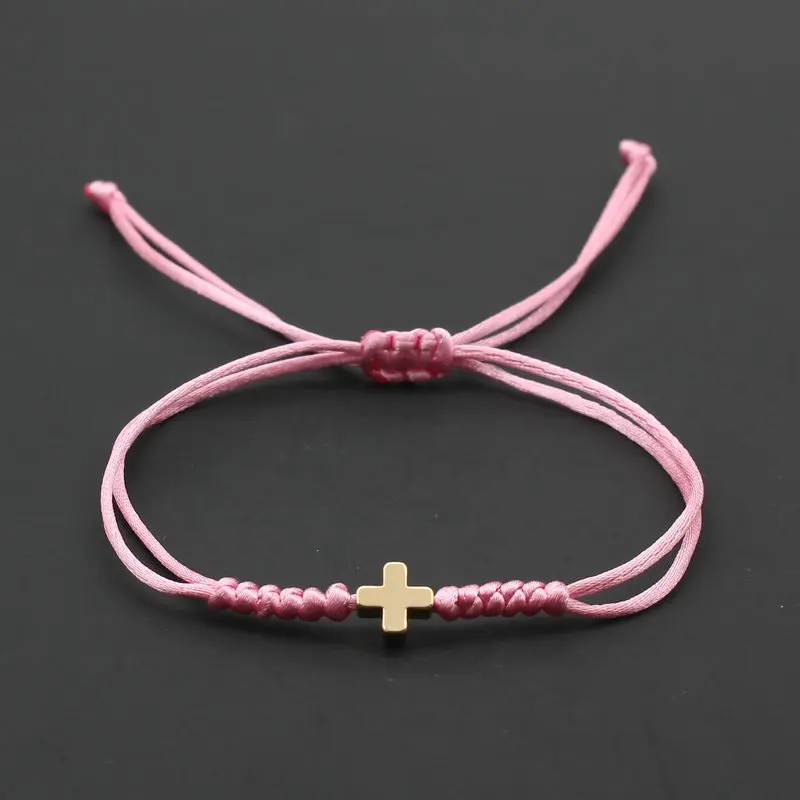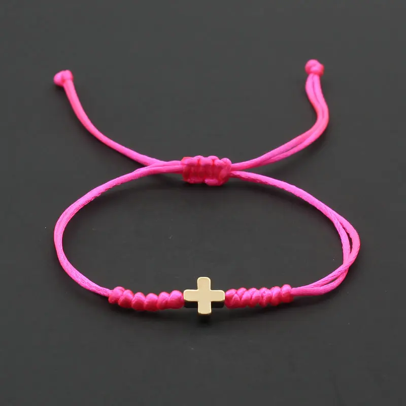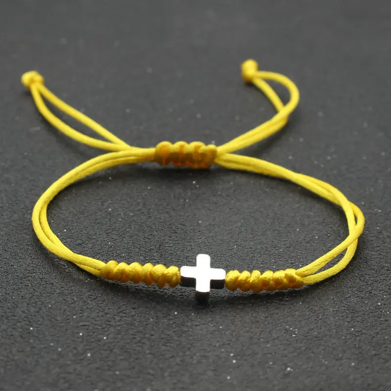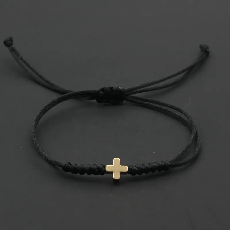 Пара браслет ручной работы плетеная Регулируемая счастливая веревка христианский Шарм металлический крест браслеты для женщин мужчин влюбленных ювелирные изделия подарок