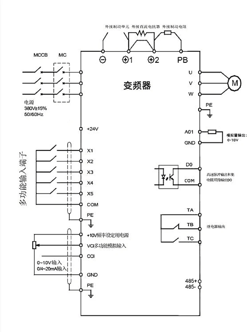 Выходные клеммы | Программируемый выход открытого коллектора 1 (открытый коллектор или Высокоскоростной импульсный выход выбирается), Программируемый релейный выход 2 программируемый AI:20 ~ 10 в | |