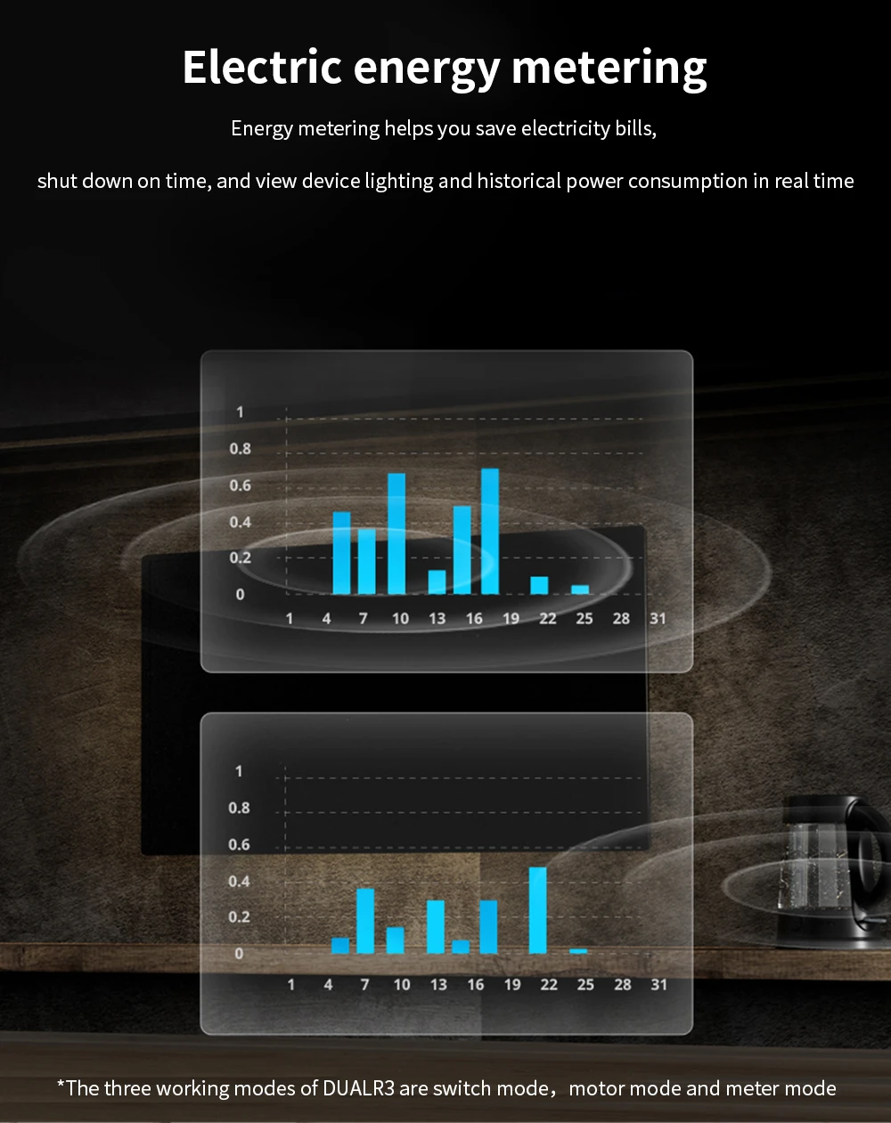 Доступны три режима работы. DUALR3 поставляется с режимом переключения, режимом двигателя и режимом счетчика. Одной из типичных особенностей является умное управление рулонными затворами и окнами в режиме двигателя. Модуль переключателя обеспечивает максимальную гибкость для ваших роликовых затворов и оконных теней с помощью пульта дистанционного управления и планирования событий независимо от того, являетесь ли вы дома или нет.