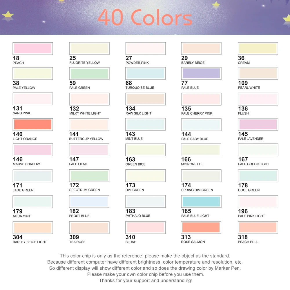 5. То, что вы получаете: 40 маркеров могут обещать вам приятный и восхитительный опыт рисования. В то же время, Наш надежный и добрый сервис всегда позади вас.
