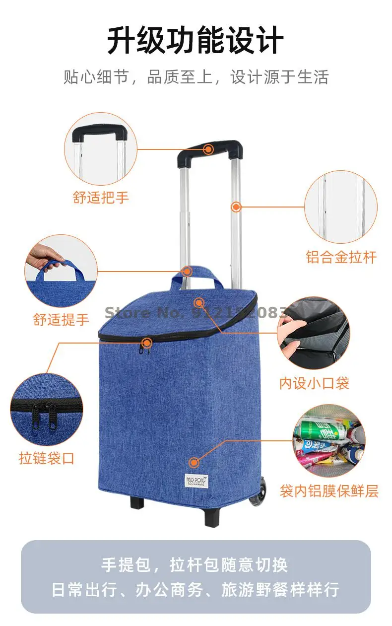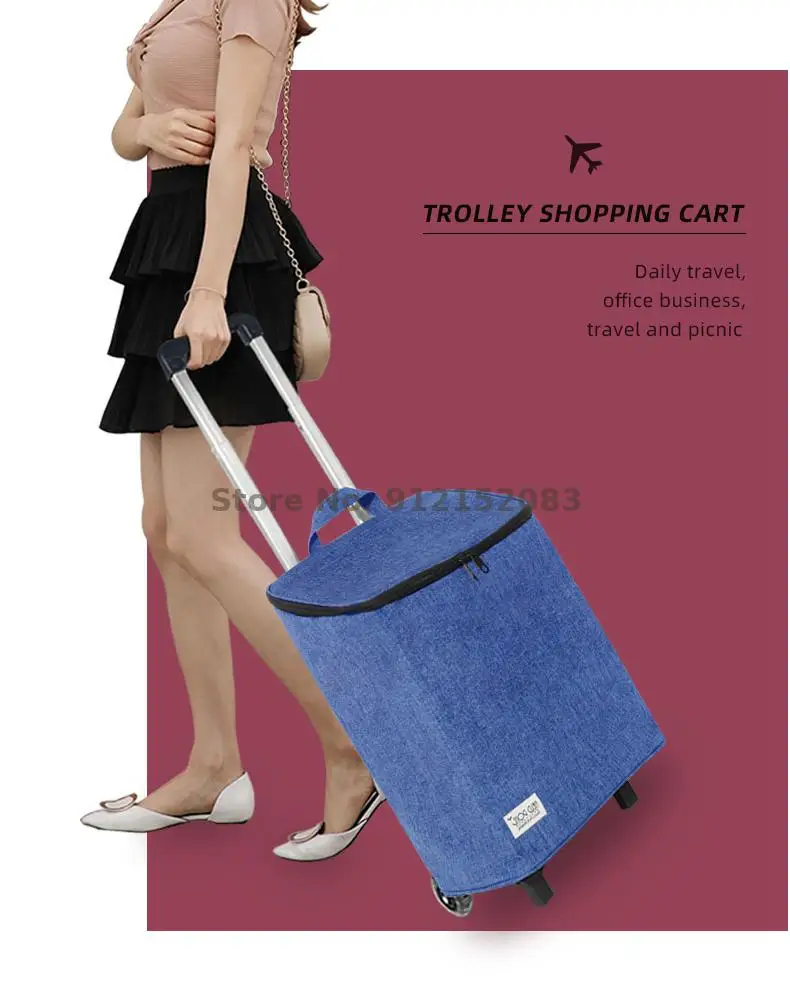Складная сумка тоут на колесиках для покупок складная вместительная тележка из