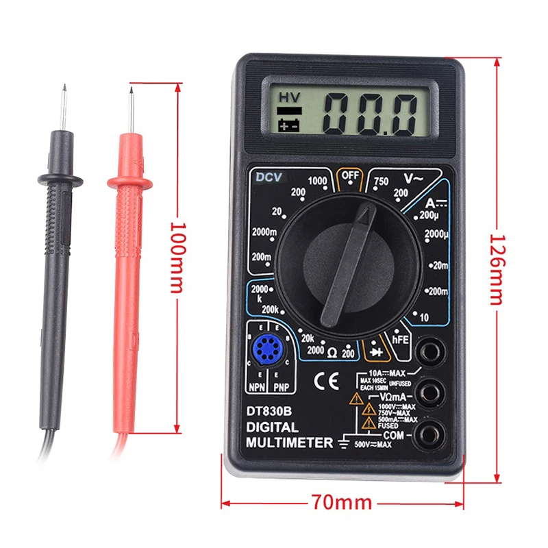 1. Обратите внимание на правильный выбор диапазона и красного тестового гнезда ручки. При измерении неизвестного количества необходимо сначала отрегулировать диапазон до максимального, а затем отрегулировать от большого до маленького до подходящего. Если «1» отображается, это означает перегрузку, и диапазон должен быть увеличен.