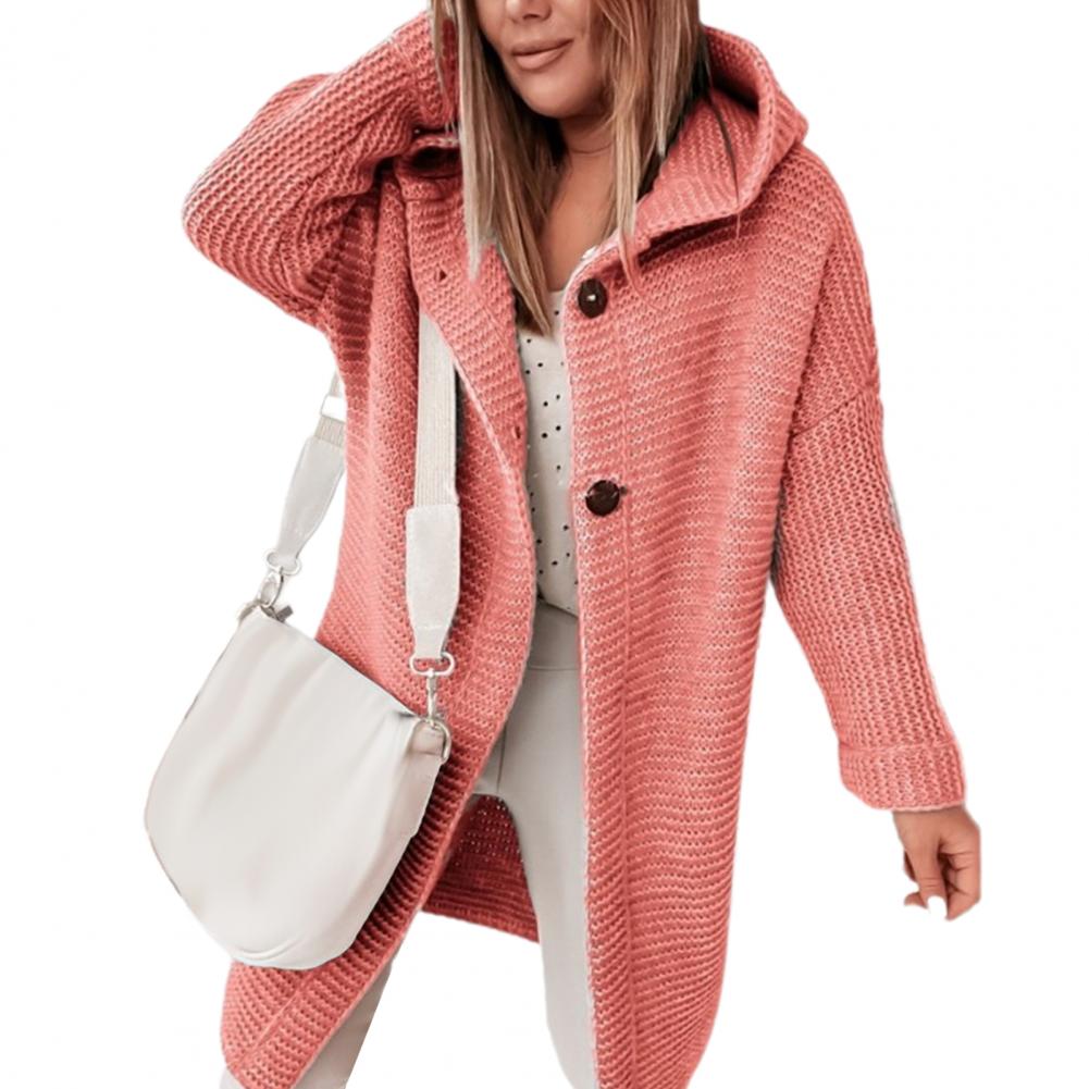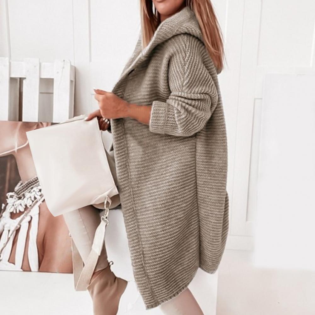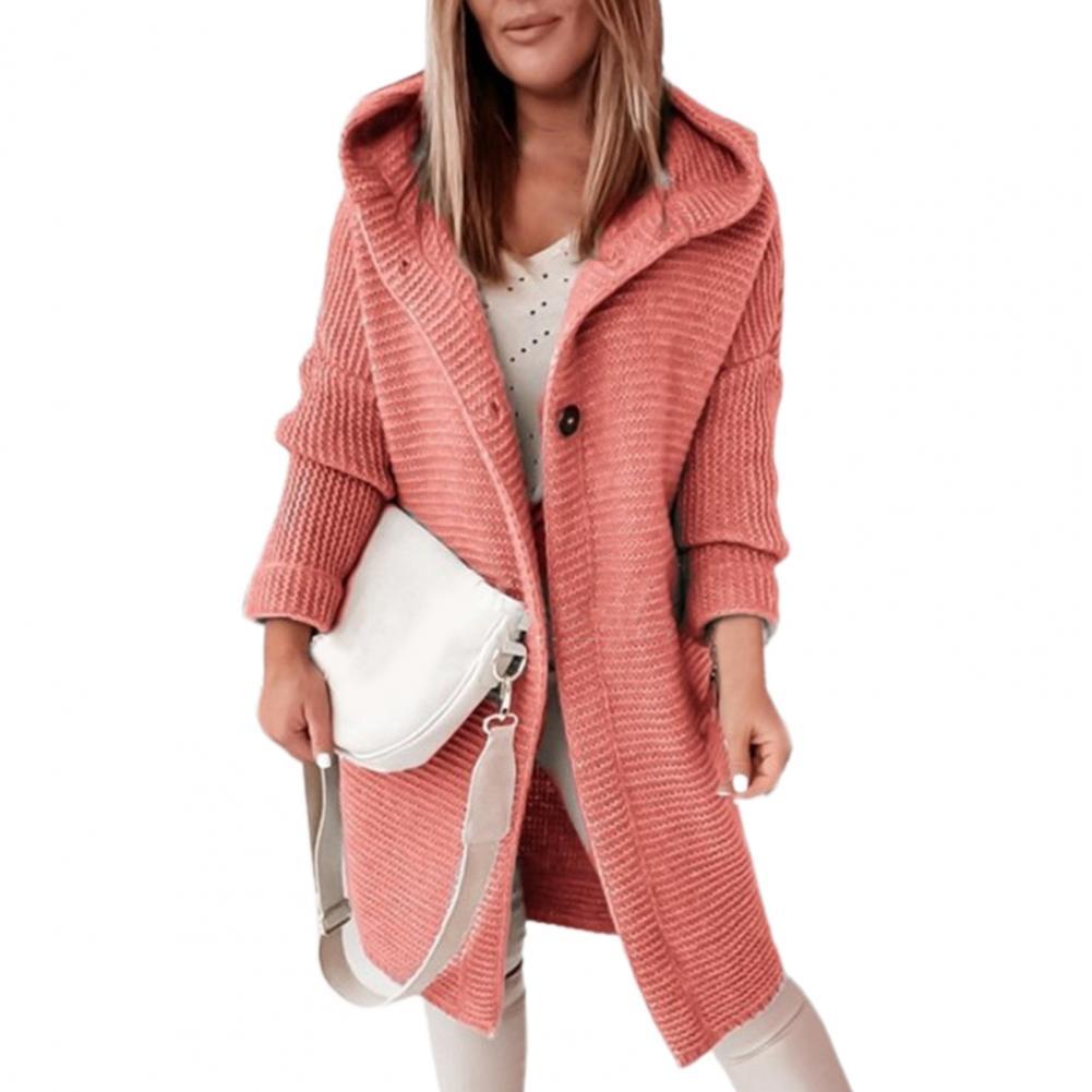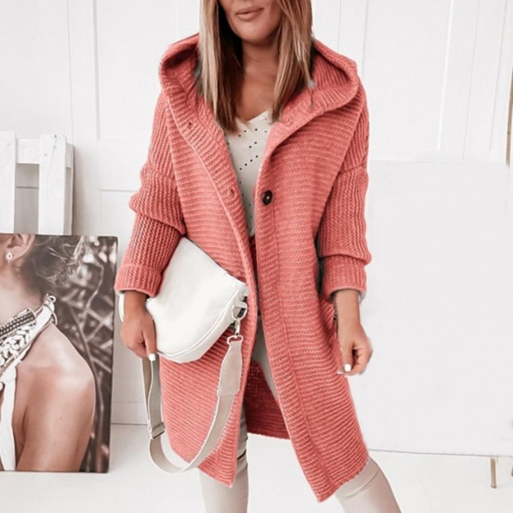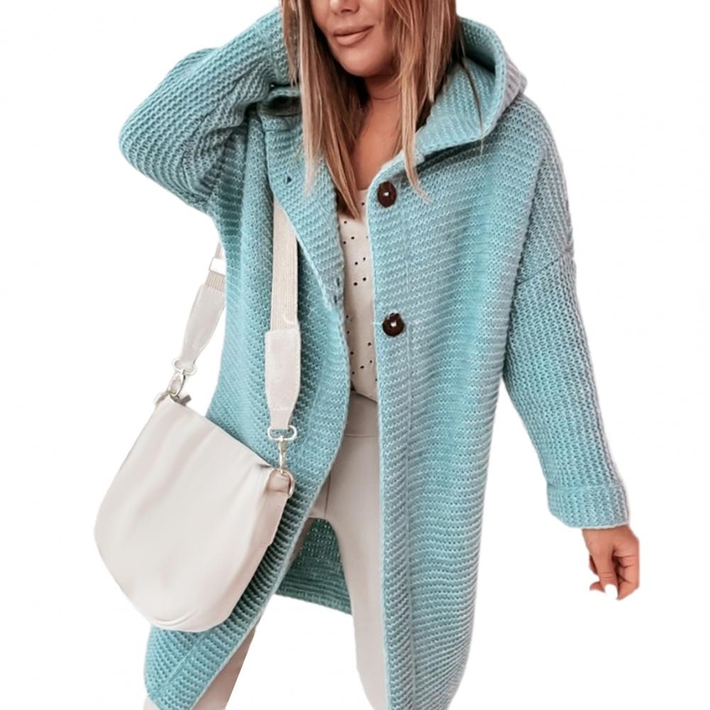 Женское пальто, однотонный Кардиган с длинным рукавом, на двух пуговицах, с капюшоном, Повседневный свитер, пальто, верхняя одежда, длинные куртки, Осень-зима