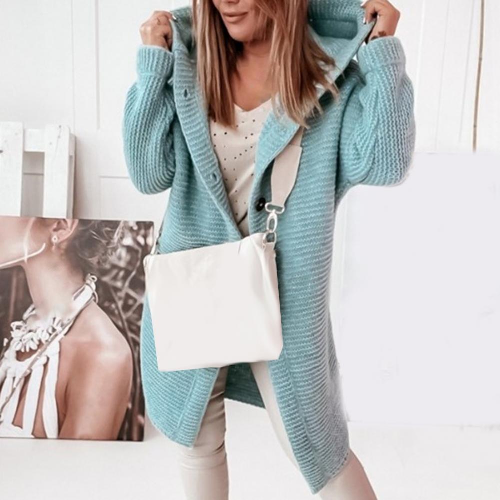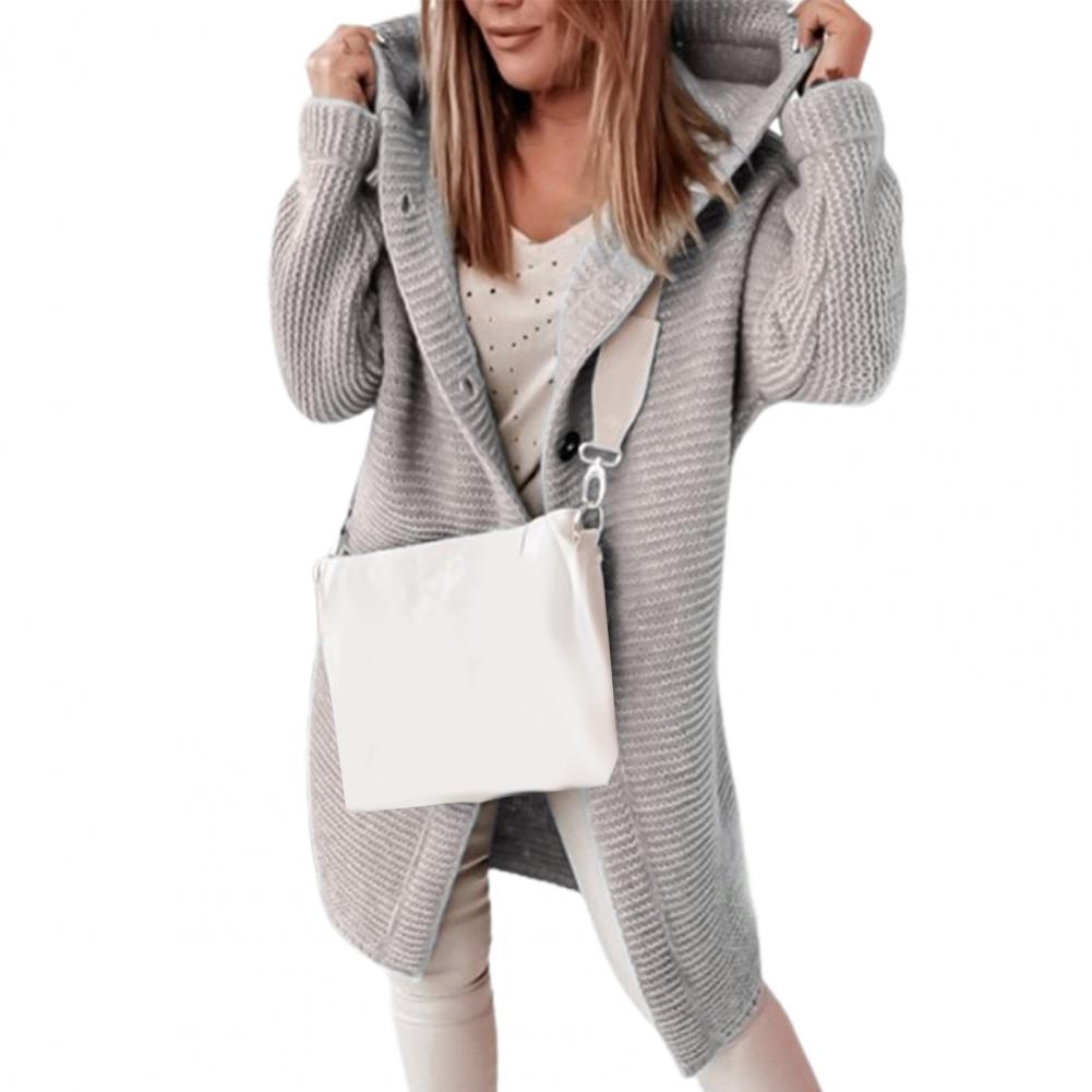 Свободный дизайн на пуговицах для женщин; Свитер-кардиган позволяет легко надевать и снимать. Он лучше подчеркнет Ваш модный шарм и защитит вас от холода, что женский кардиган с капюшоном и однотонным дизайном.