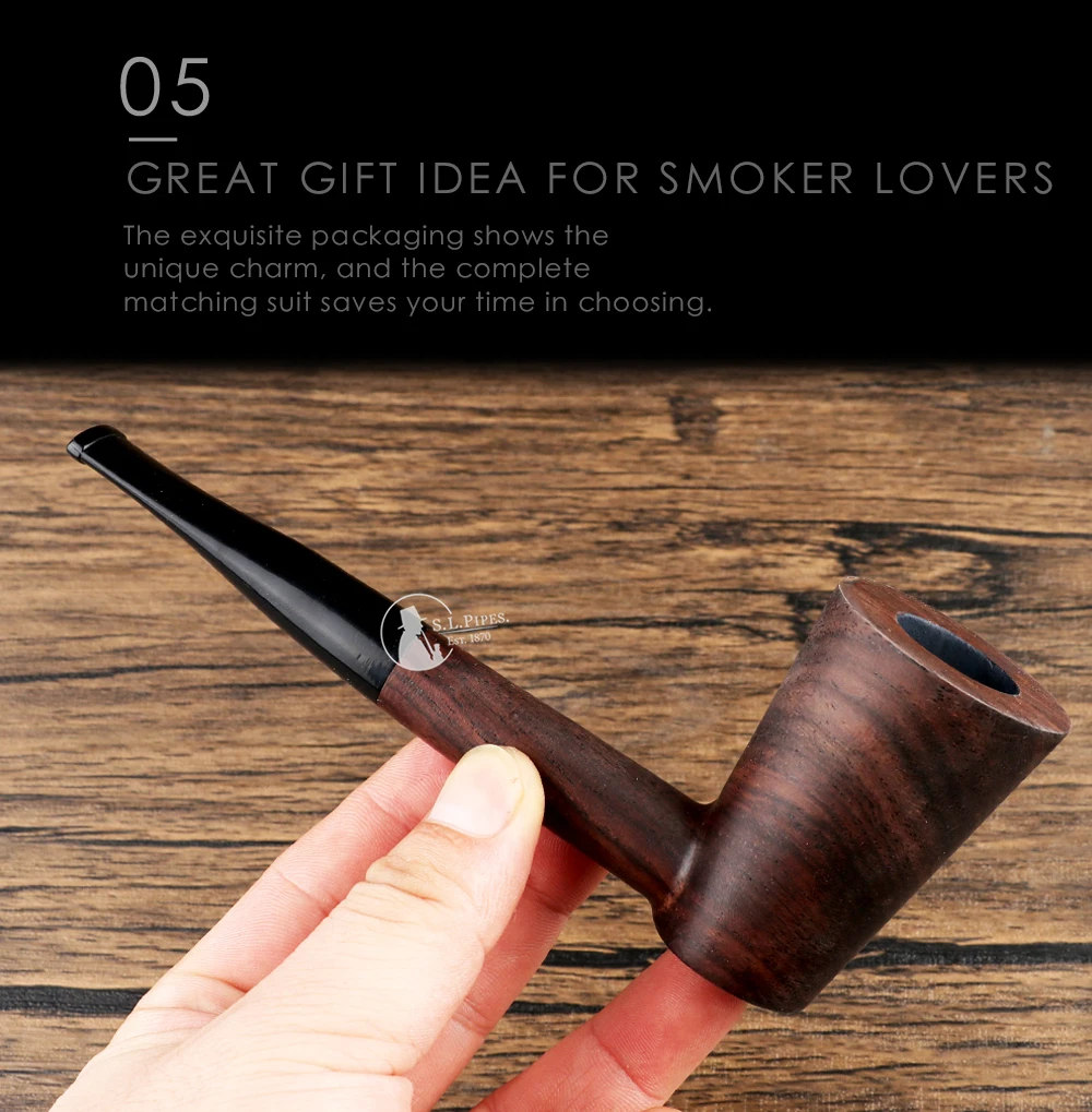● Высококачественная деревянная труба изготовлена из изысканной структуры, высокой плотности, высокой гладкости после шлифования, полировки и коррозионной стойкости, элегантного дизайна и элегантного внешнего вида. Дарите подарки любым любителям труб.