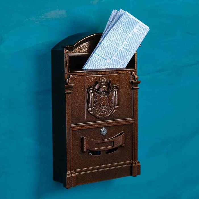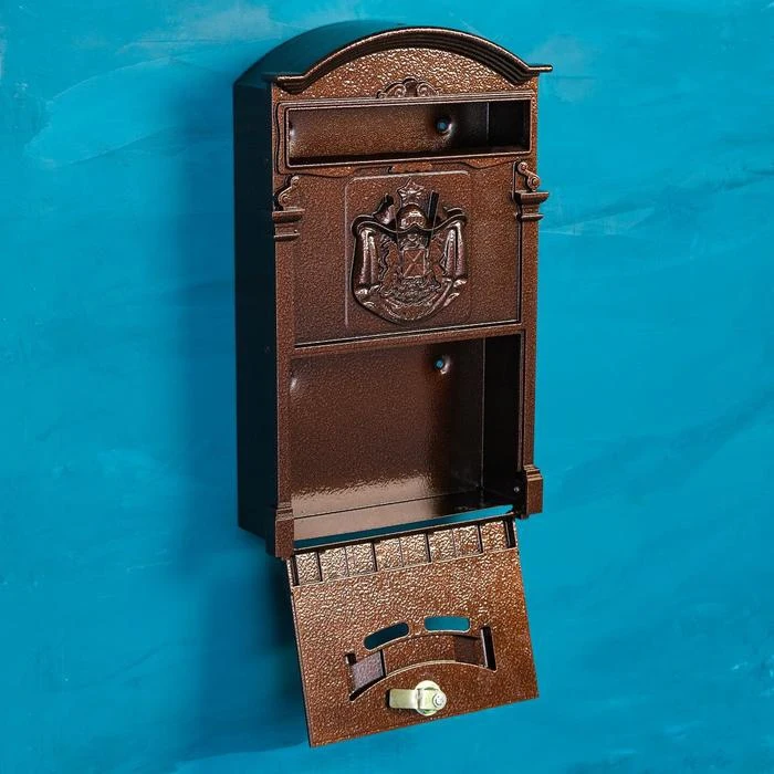 Чугунный почтовый ящик бронзовый тисненый отделочный декор металлический для
