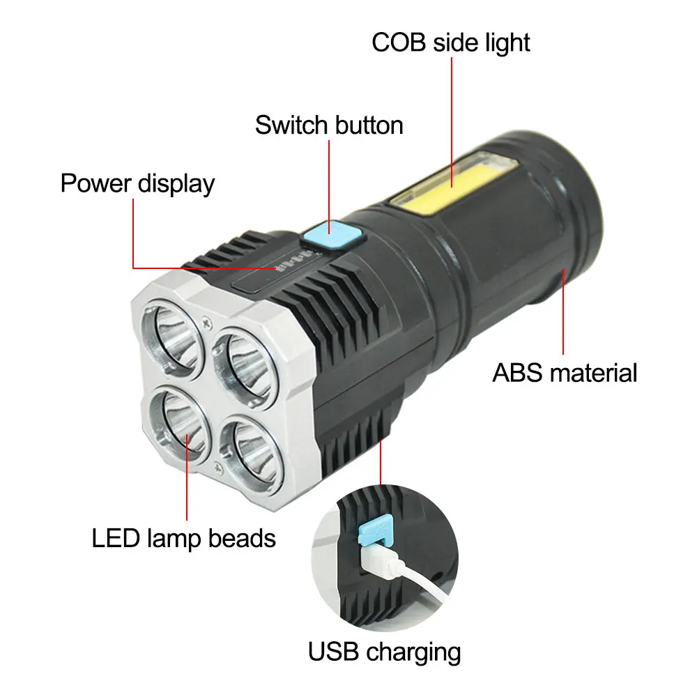 Название: 4LED Портативный USB Перезаряжаемый Фонарик