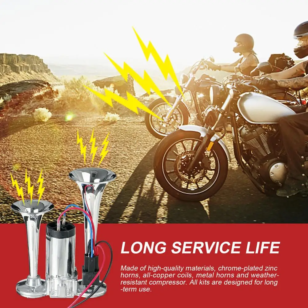 2. Длительный срок службы: Изготовлен из высококачественных материалов, хромированных цинковых рогов, медных катушек, Металлические рожки и устойчивый к атмосферным воздействиям компрессор. Все наборы предназначены для долгосрочного использования.