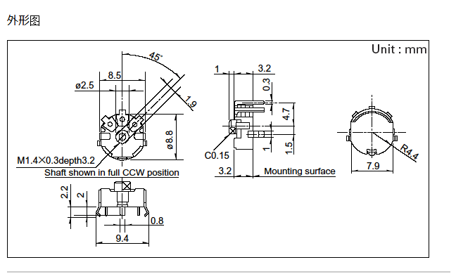 Переднее RK08H ручка заднего вида радио SONY Y8 миниатюрный регулируемый потенциометр громкости B100K RK08H1110123-TT1 Оригинал аутентичный с детальным чертежом размера данных