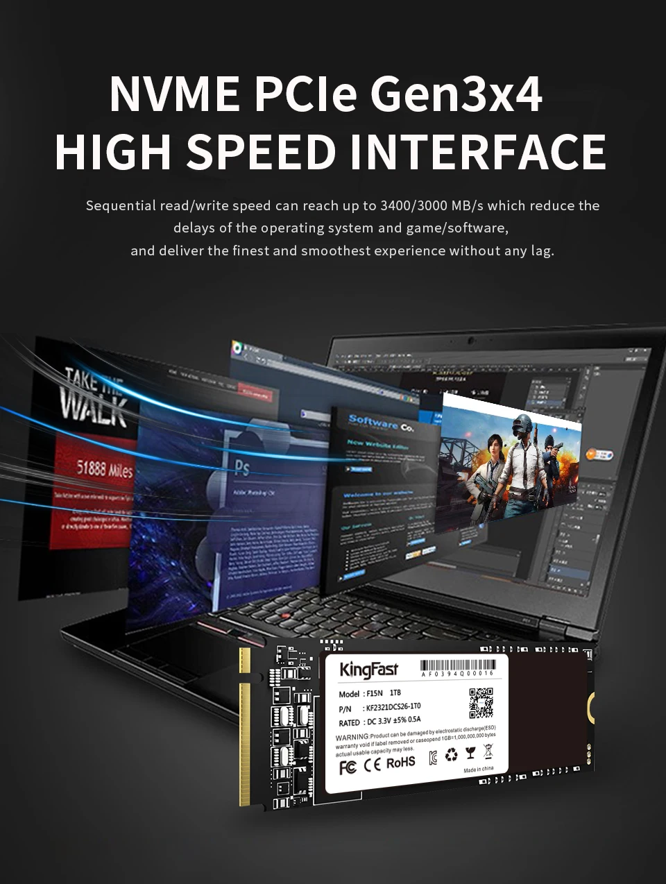 Производительность передачи в 5 раз выше, чем интерфейс SATA III. Способен считывать и записывать большое количество игровых данных, сложную графику и алгоритмы обработки движения или загружать сверхмощное программное обеспечение для редактирования видео/графики.