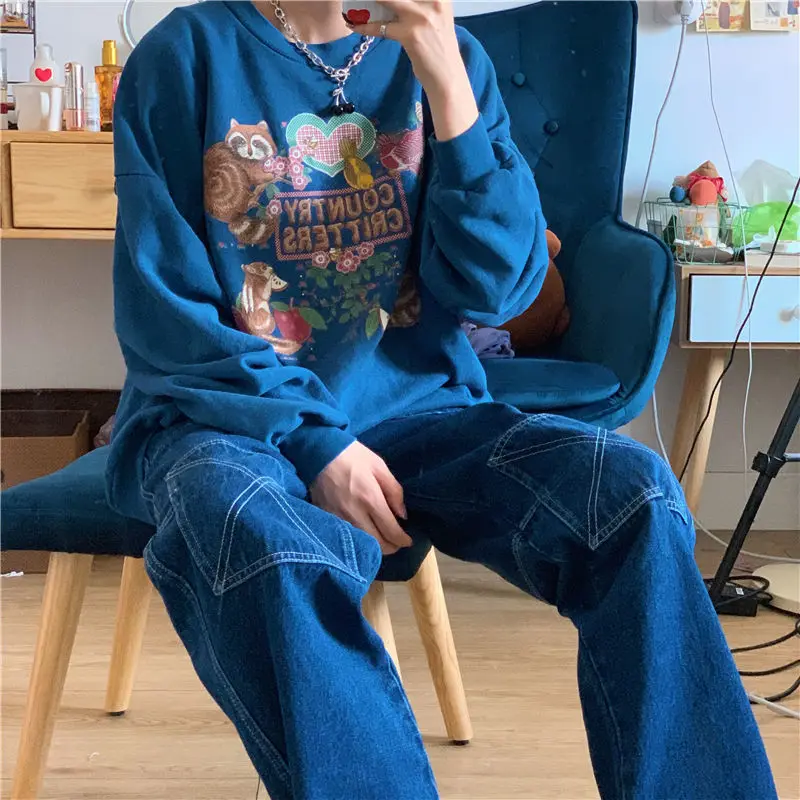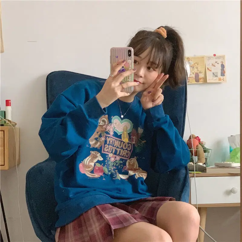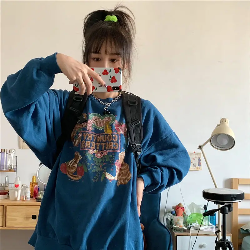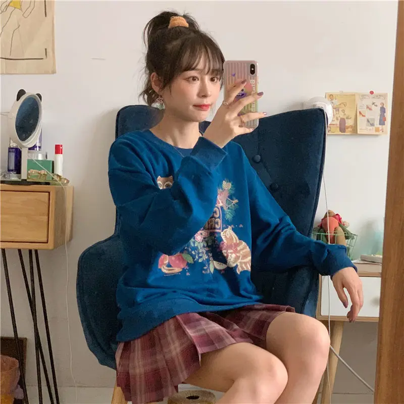 Тонкий хлопковый свитер с рисунком для девочек; Сезон весна-осень; Стильный топ без застежки с круглым вырезом