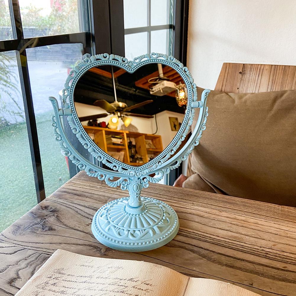 Зеркало для макияжа в форме сердца, винтажное Европейское стильное акриловое одностороннее зеркало для макияжа, вращающееся на 360 градусов, настольные инструменты для макияжа