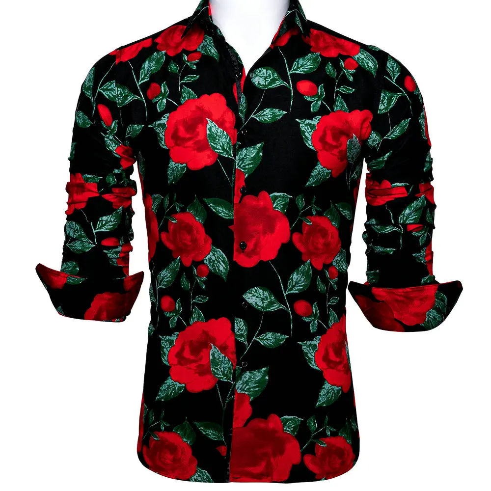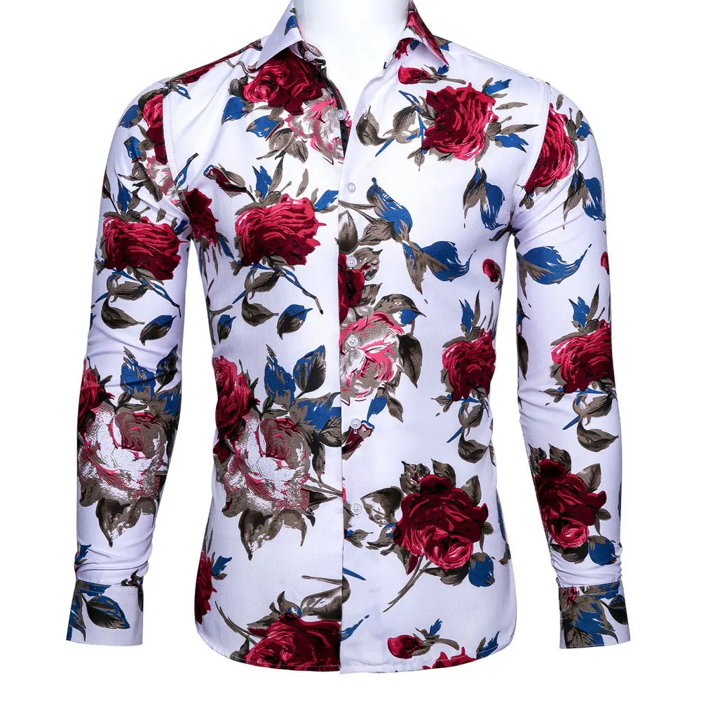 Лидер продаж; Роскошные с красными розами белая рубашка мужская приталенная одежда с длинным рукавом, с геометрическим рисунком, для клуба, выпускного, рубашка S-3XL Barry. Ван дизайнер