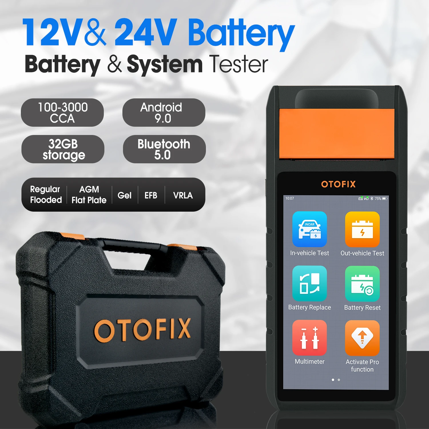 В OTOFIX BT1-со своим Смарт 5,5 в такой стране, как. Сенсорный экран-позволяет вам проверить свои батареи и электрические системы и зарегистрировать новый аккумулятор с самым быстрым и удобным опытом когда-либо. В сочетании с облачными сервисами otofix BT1 предоставляет комплексное решение для анализа батареи от диагностики до ремонта.