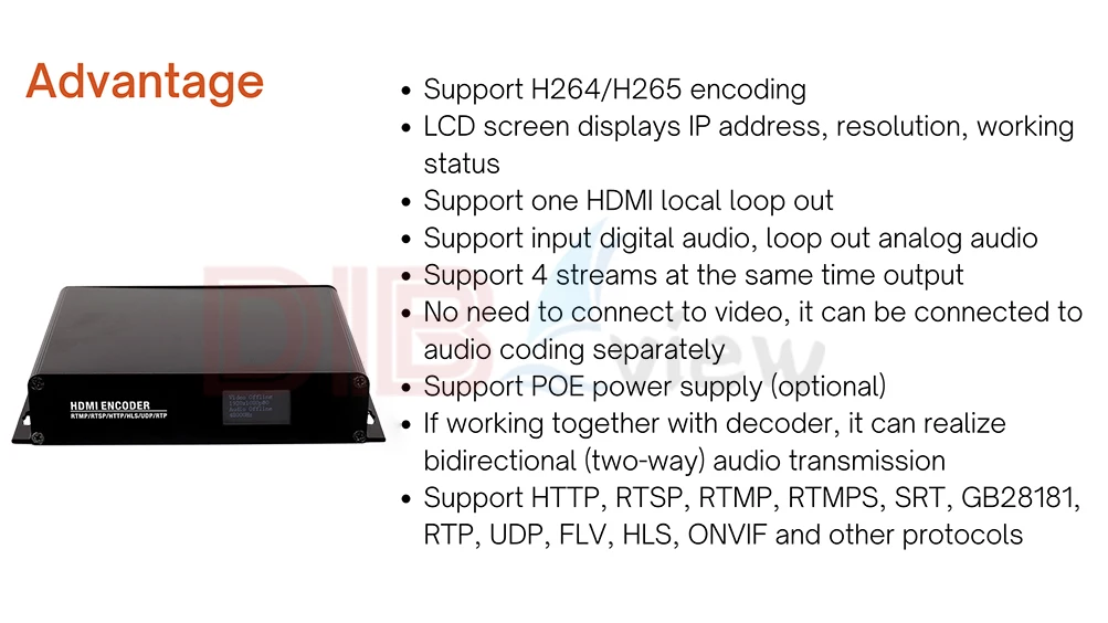 OTV-HEL1 H.264 H.265 потоковый кодировщик IPTV поддерживает дополнительный источник питания POE, ЖК-дисплей в режиме реального времени для обеспечения бесперебойной потоковой передачи видео.