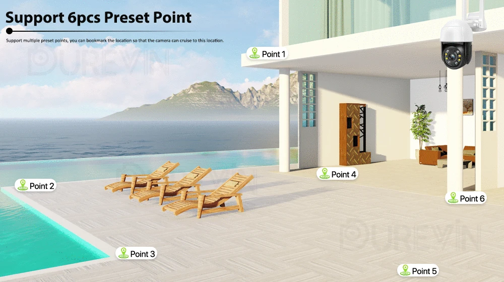 Поддерживает несколько заданных точек, вы можете отметить местоположение, чтобы Камера могла путешествовать по этому месту.
