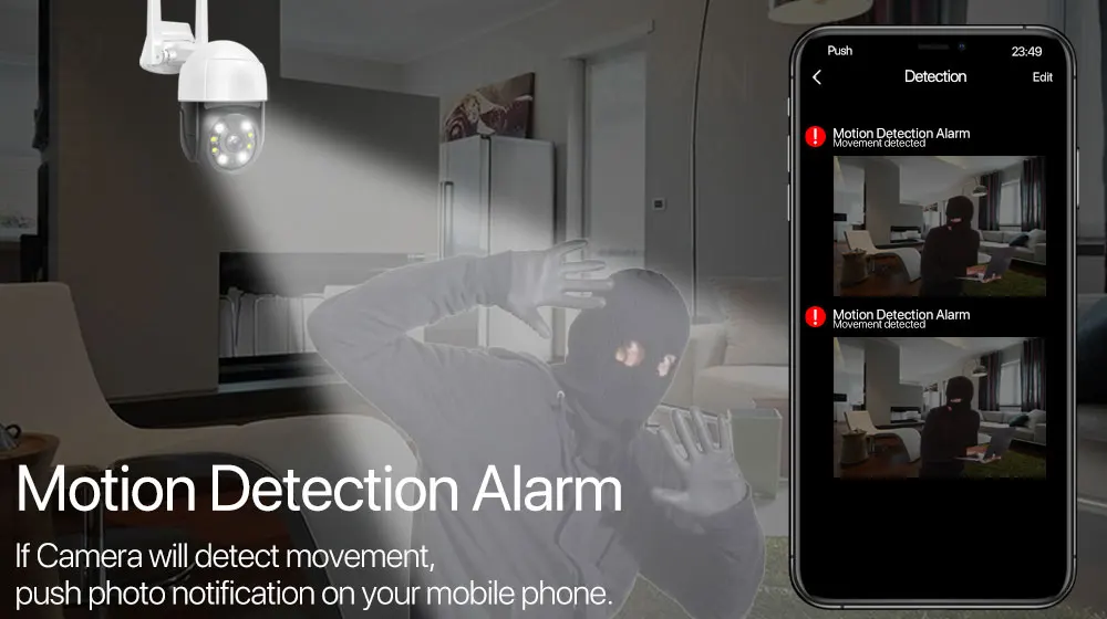 Обнаружение движения может регулировать чувствительность и применение профессиональной технологии гуманоидного обнаружения, что значительно снижает Ложные сигналы тревоги и эффективно улучшает качество сигналов тревоги. Вам не придется беспокоиться о тривиальных ложных сигналах