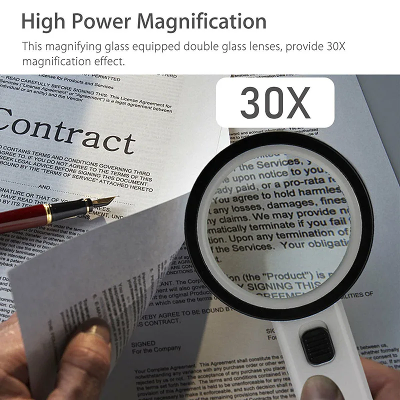 Увеличение высокой мощности: это увеличительное стекло оснащено двойными стеклянными линзами, обеспечивая эффект увеличения 30x, поможет кому-то с низким зрением увидеть лучше.