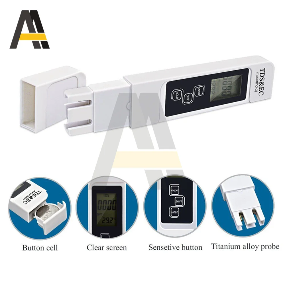 1. Обеспечивает точные и надежные показания теста: 3-в-1 цифровой измерительный прибор TDS обеспечивает точные показания для TDS (всего растворенные твердые вещества) EC (электропроводность) и температуры. Профессиональный, точный и точный 3-в-1 TDS, EC, и Температура воды метр. Измеритель TDS имеет автоматическую компенсацию температуры в режиме измерения. 9 минут без работы, счетчик автоматически отключится. Экономит энергию, продлевает срок службы батареи.
