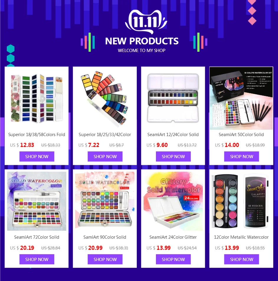 SeamiArt 50/72 Вт/90 Цвет Твердые акварельные краски в наборе Цвет Набор для рисования Портативный дорожная из металла с защитной коробкой водяного Цвет для татуажа, пигмент для мануального татуажа начинающих живопись воды Цвет Бумага художественная краска расходные материалы