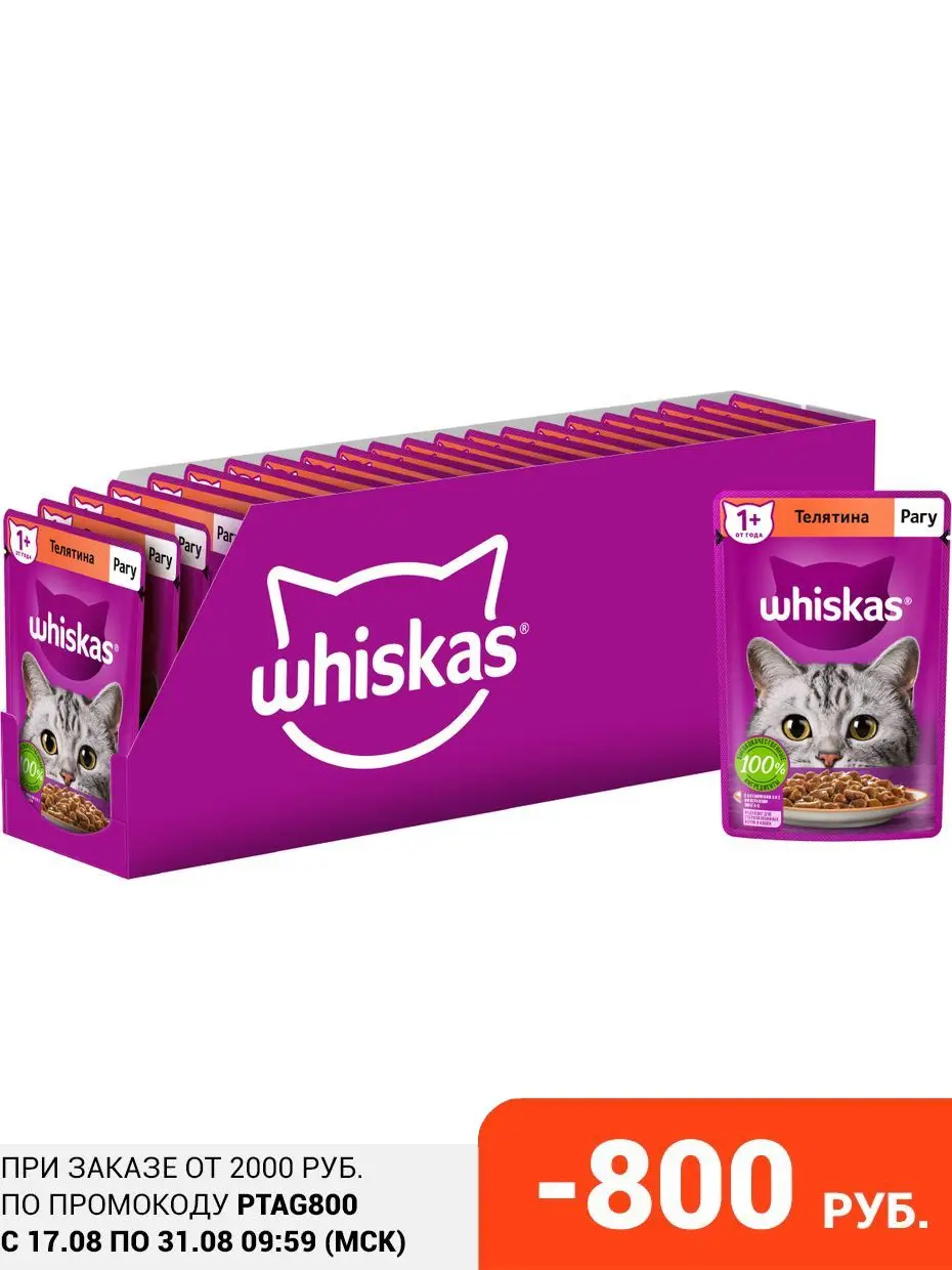 Whiskas влажный корм для кошек, рагу с телятиной (28шт в уп), 75 гр