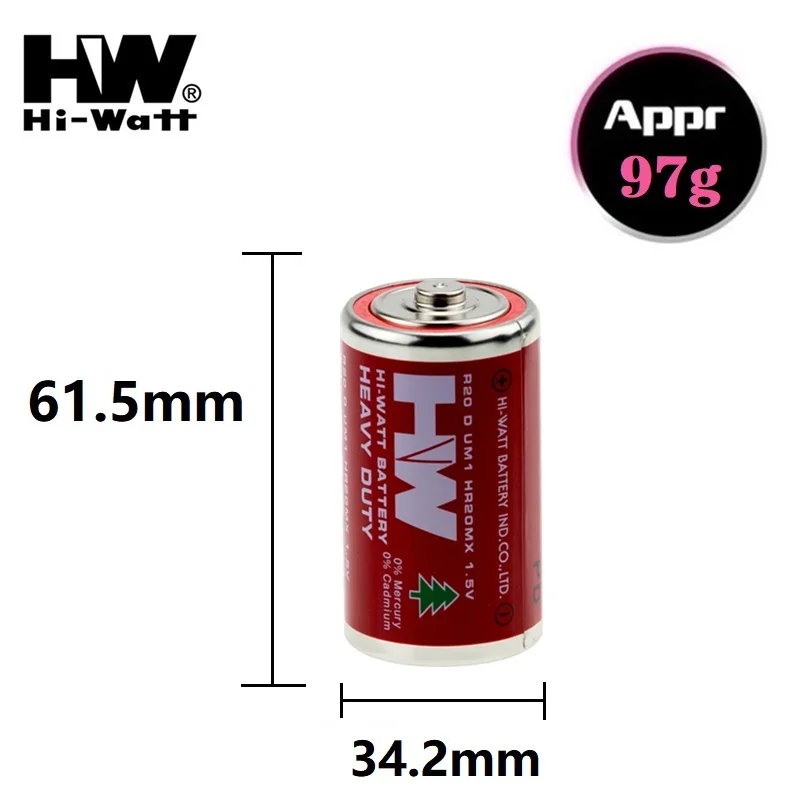 6 шт Hi-Watt R20P тяжелых D размер батареи 1,5 V 13F UM1 MN1300 E95 углеродный цинк батарея Первичная сухая батарея