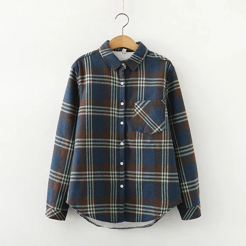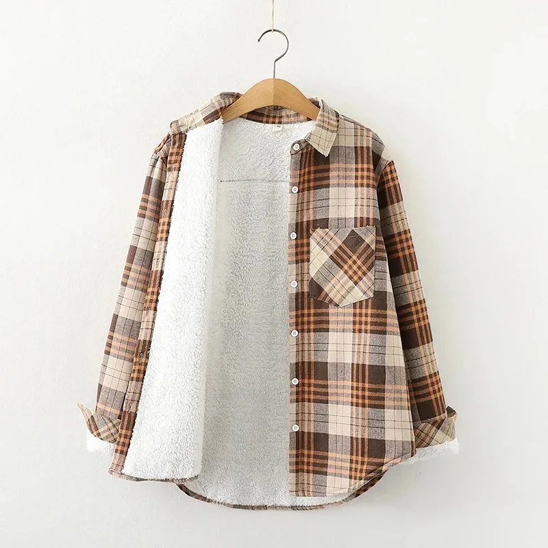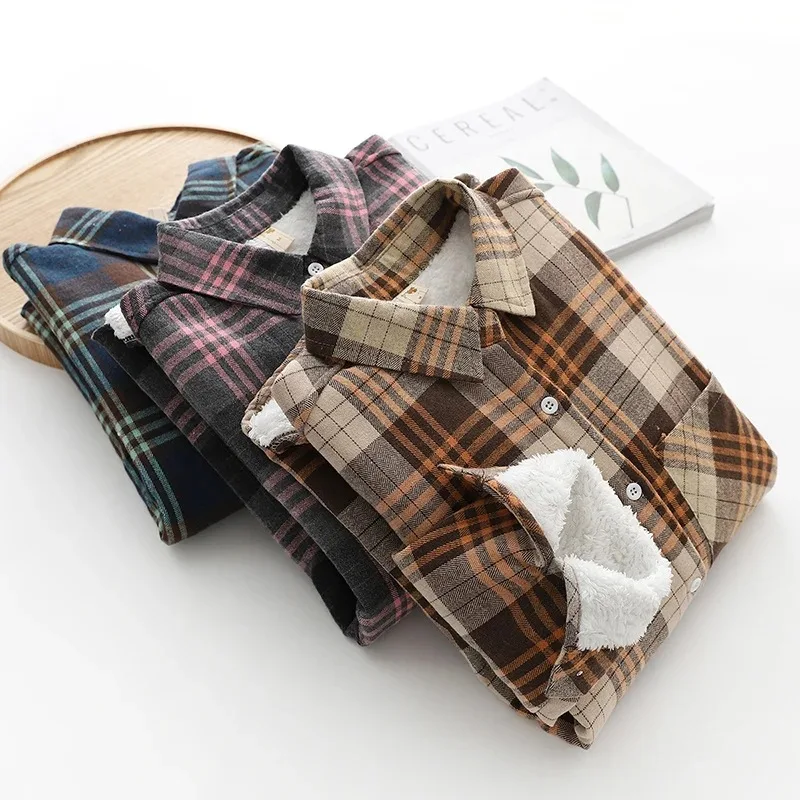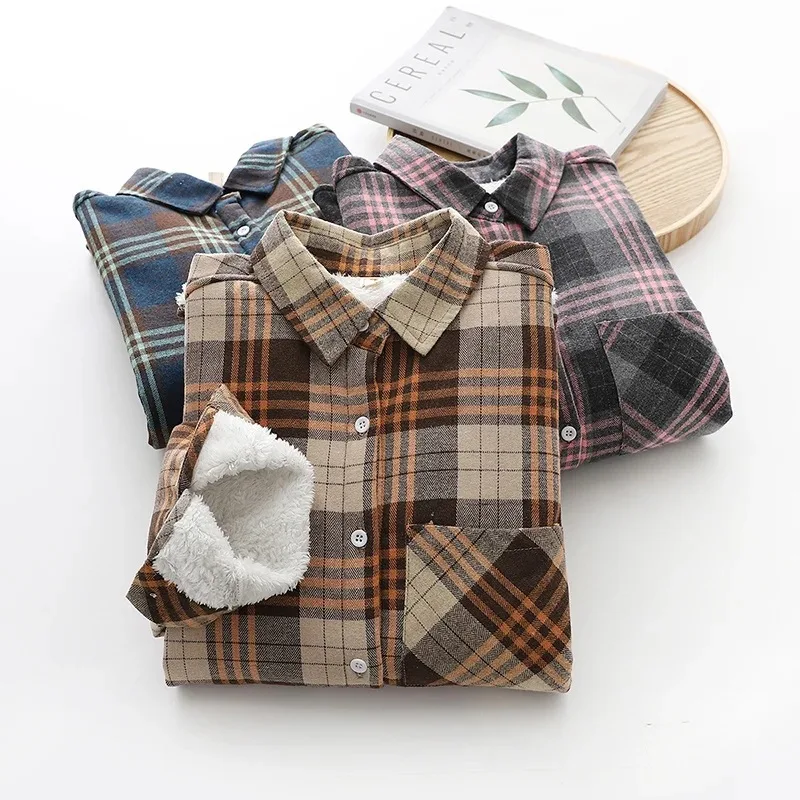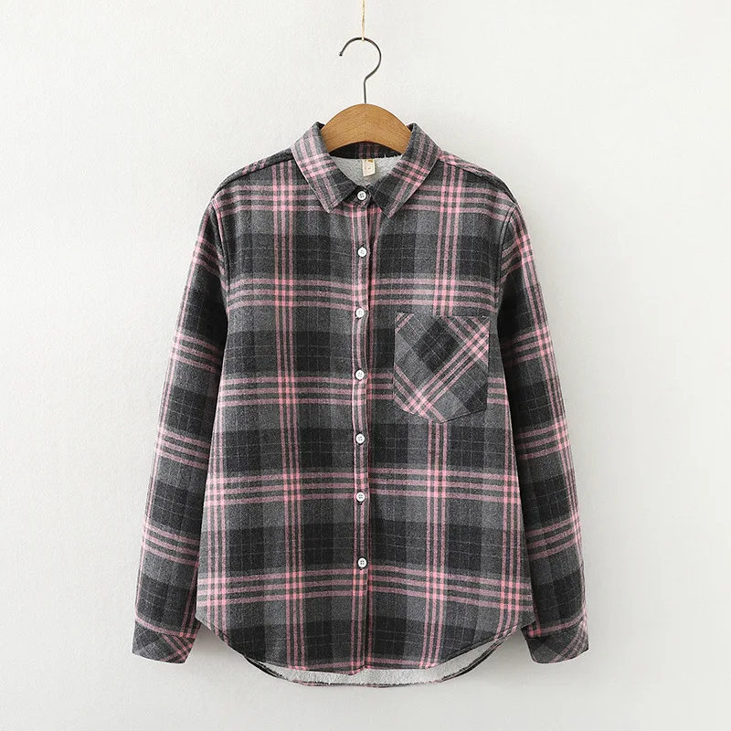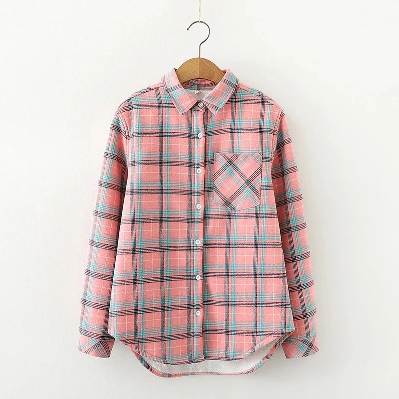 Утолщенные бархатные рубашки в клетку, женские розовые теплые блузки и топы, Новая повседневная Свободная Женская одежда, верхняя одежда C18906X