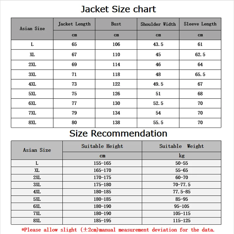 Обязательно проверьте, подходят ли ваши измерения перед размещением заказа, потому что это Азиатский размер. Для некоторых клиентов одного роста и веса результаты измерений могут отличаться. Поэтому перед размещением заказа, вы должны тщательно проверить размер в таблице размеров. По сравнению с европейскими размерами, Азиатские размеры будут меньше двух цифр. Если ваш европейский размер X, рекомендуется разместить заказ на X + 2. Если вы не знаете размер, вы можете обратиться к продавцу.