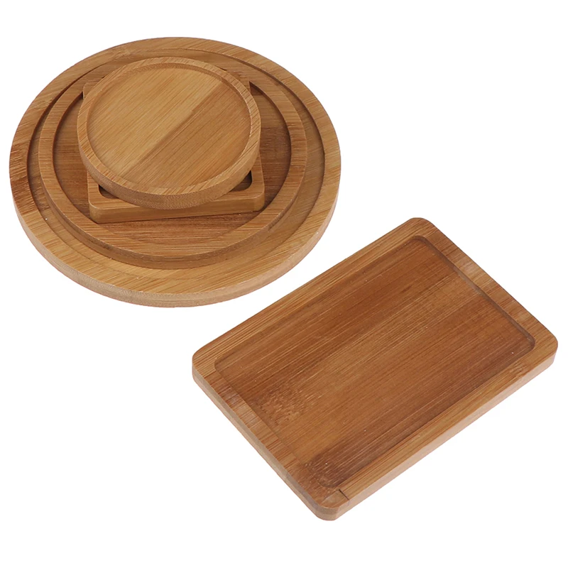 Bamboo Round Square Plates For Succulents Pots Trays Base Stander Garden Decor Home Decoration Crafts