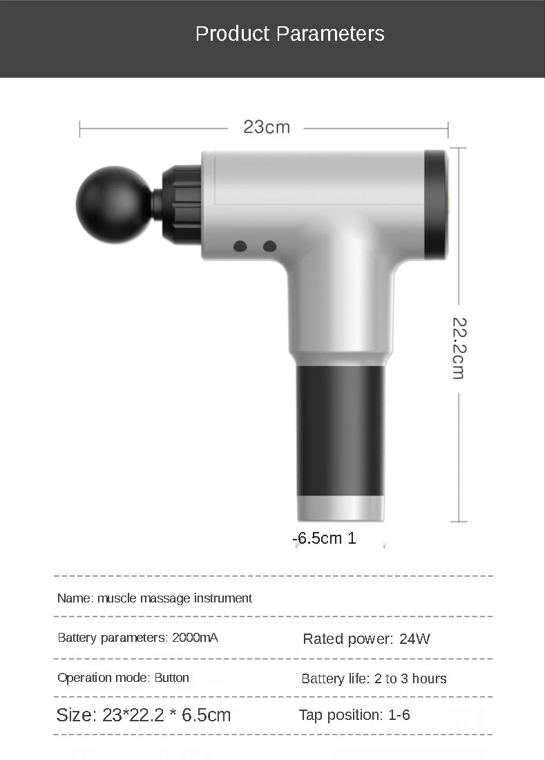 1. В соответствии с различными частями массажа, выберите соответствующую массажную головку и вставьте ее в круглое отверстие перед пушкой fascia