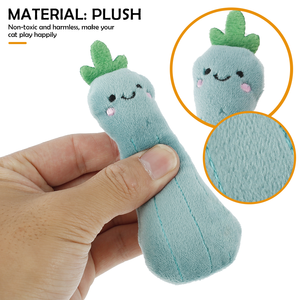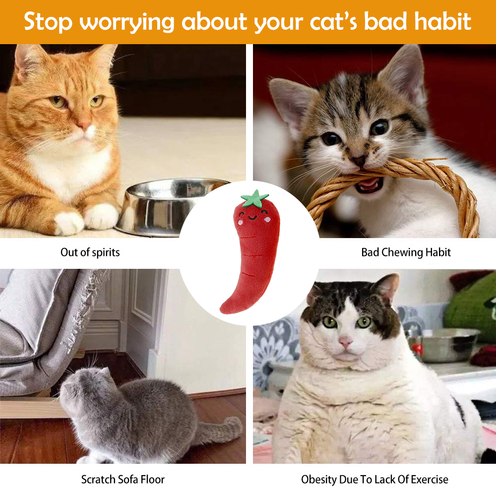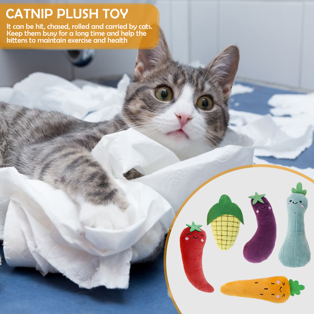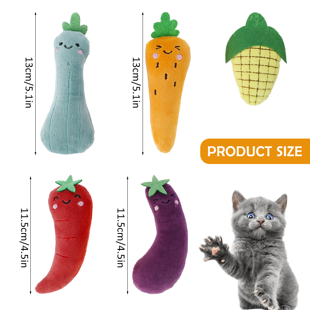 【Различные кошачьи мяты 】 посылка входят 5 различных игрушек из кошачьей мяты, таких как морковь, кукуруза, баклажаны, перец, тыква. Кошачья мята будет издавать аромат, стимулирующий сильный интерес вашей кошки к игре, пинанию и жеванию. Игрушка из кошачьей мяты также может облегчить депрессию и стресс вашей кошки. Больше не беспокойтесь, что вашей кошке будет скучно.
