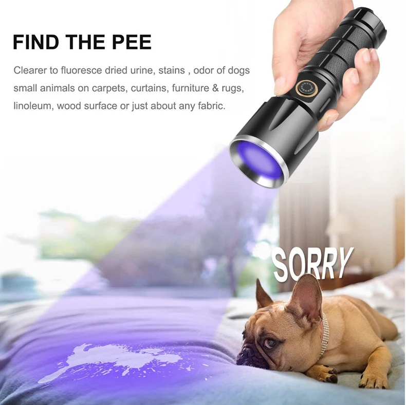 УФ ультрафиолетовая вспышка светильник фонарь светодиодный 365 нм Ручной портативный черный светильник детектор мочи и пятен для домашних животных флэш-светильник s