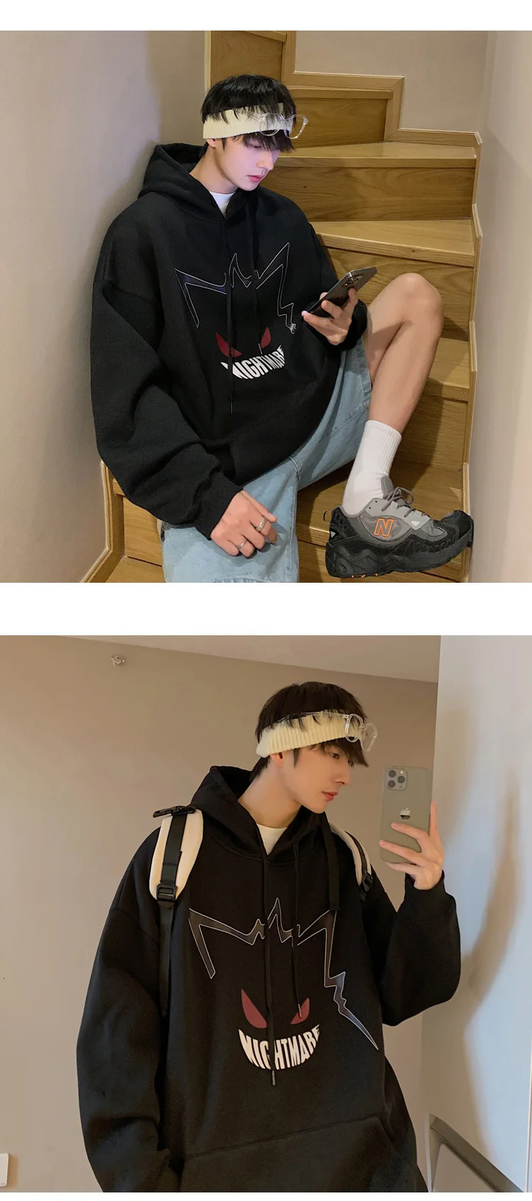 Свитшот мужской с капюшоном худи мультяшным принтом повседневный Свободный