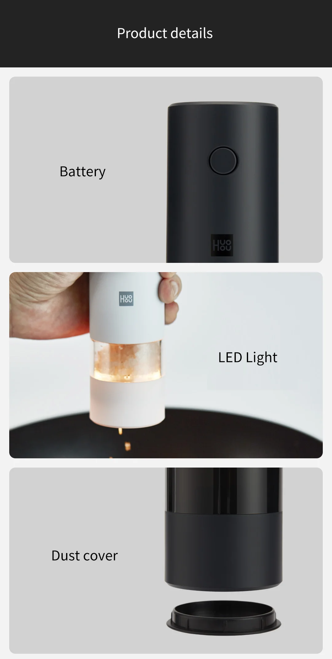 Наименование товара: электрическая мельница для соли и перца Huohou