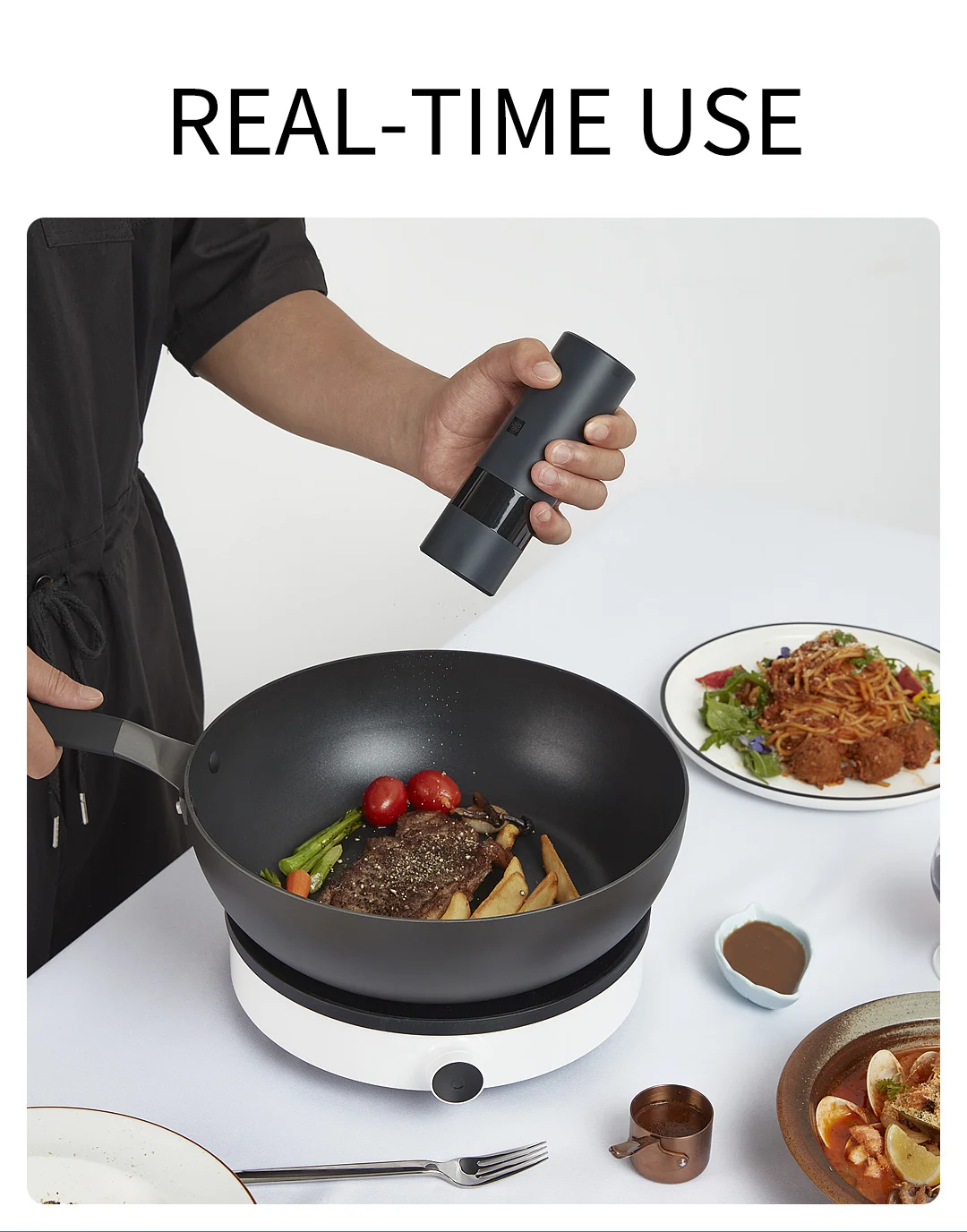 <Регулируемая грубость: 5 режимов для регулировки, просто Отрегулируйте грубость ваших специй от тонкой или грубой.