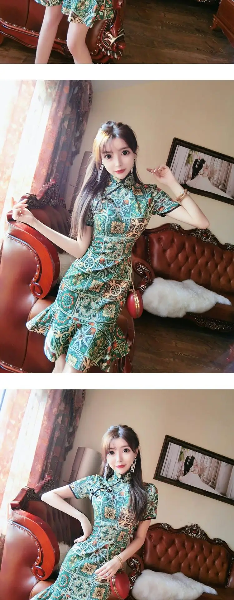 Женское платье-Ципао из органзы элегантное ТРАПЕЦИЕВИДНОЕ ПЛАТЬЕ в стиле ретро с