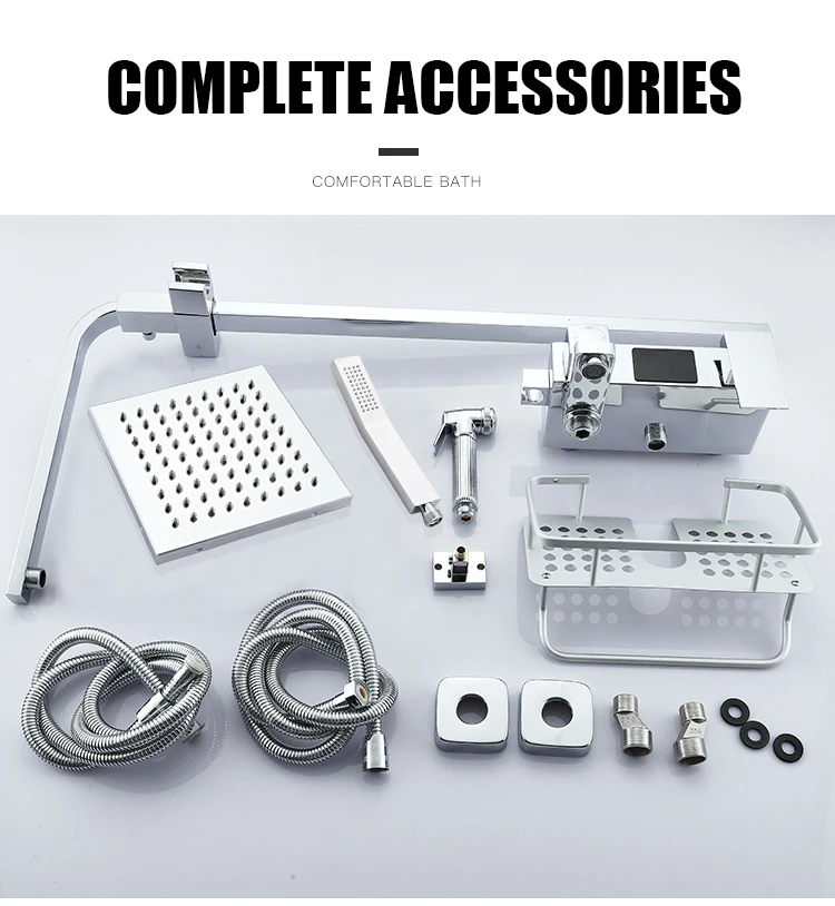 Термостатический набор для душа, ванная комната, горячая и холодная цифровая Душевая система, настенное крепление, квадратная головка, спа, дождевик, смеситель для ванны, кран для ванны Grifos