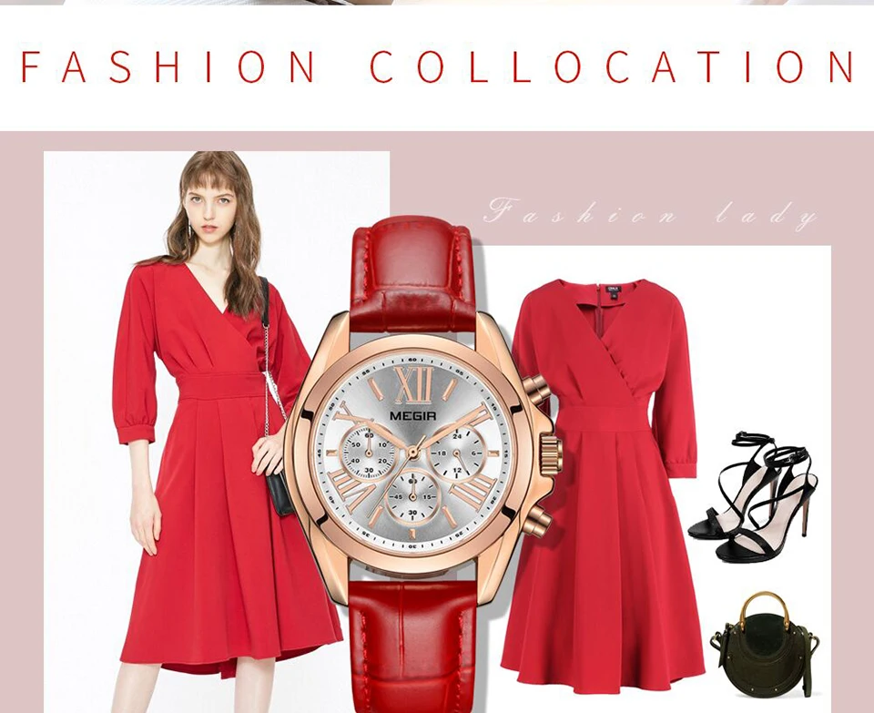 -1 х многофункциональные кварцевые женские часы MEGIR