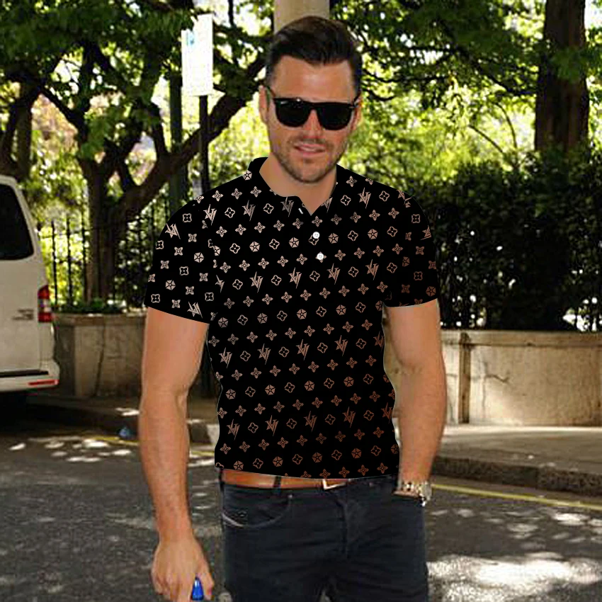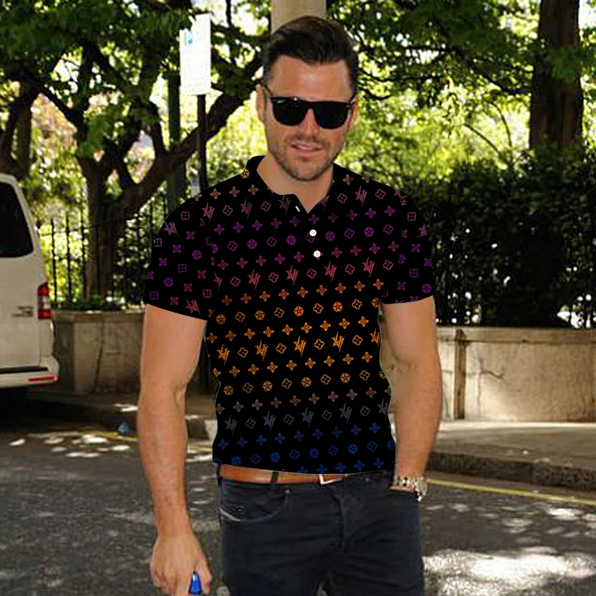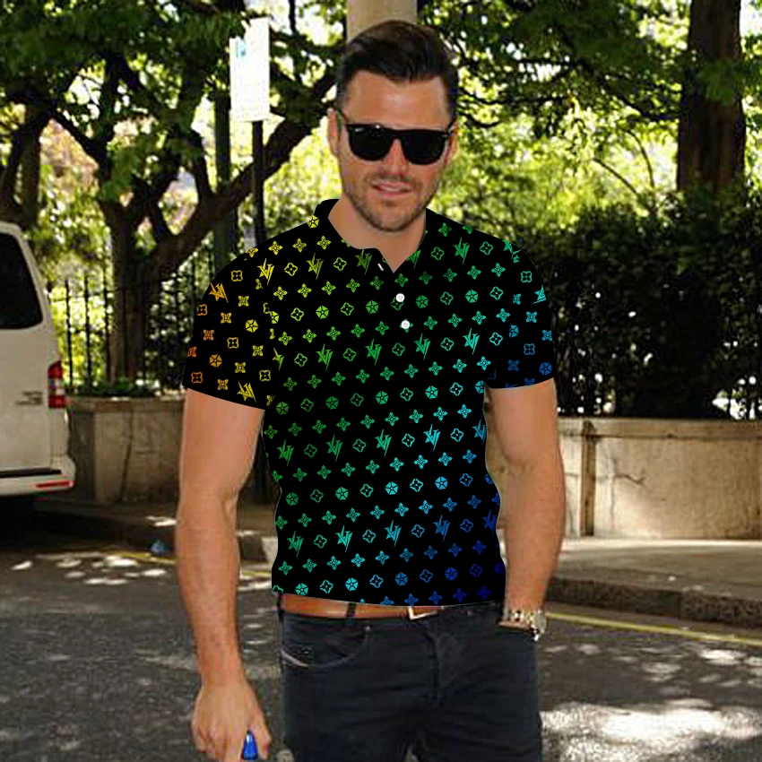 Мужская хлопковая рубашка-поло зеленая желтая красная в стиле хип-хоп блестящая