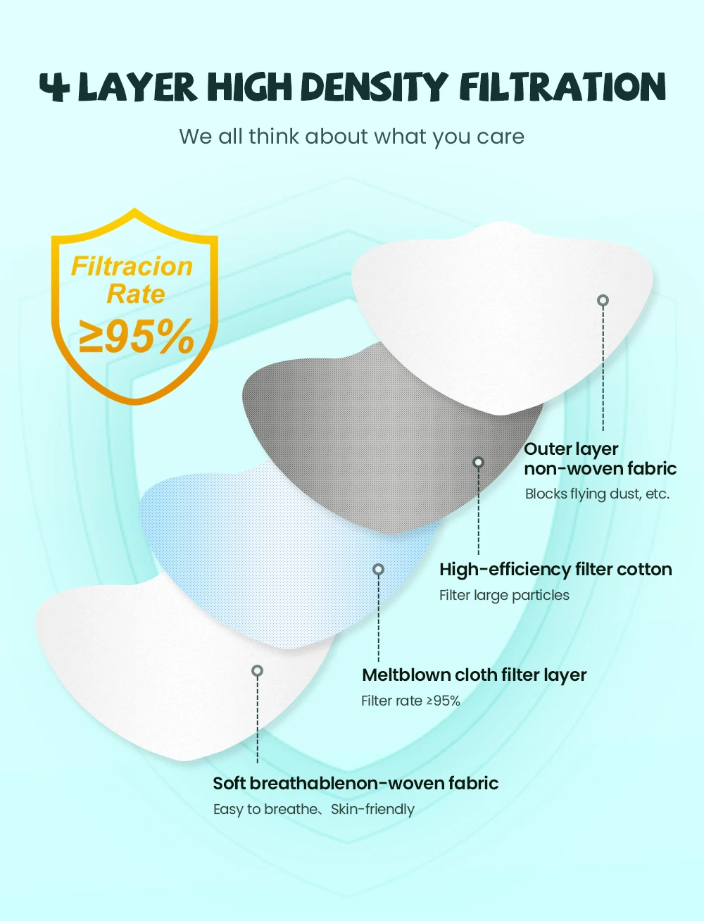 ④ Высококачественный защитный эффект. Его защитный эффект такой же, как маска KN95 и Европейская маска FFP2.
