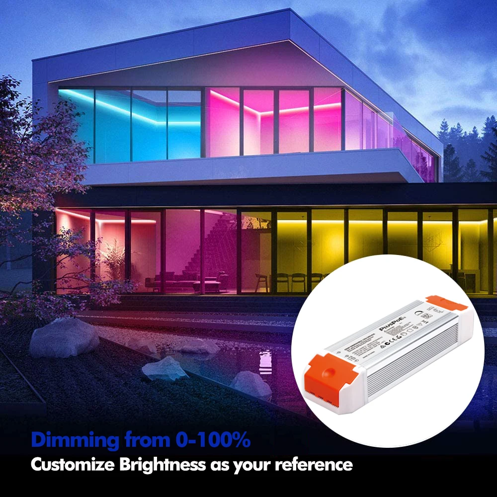 Features:This dimmable power supply allows you to control the brightness of 12V LED strip lights, puck lights, and more from a standard wall dimmer.