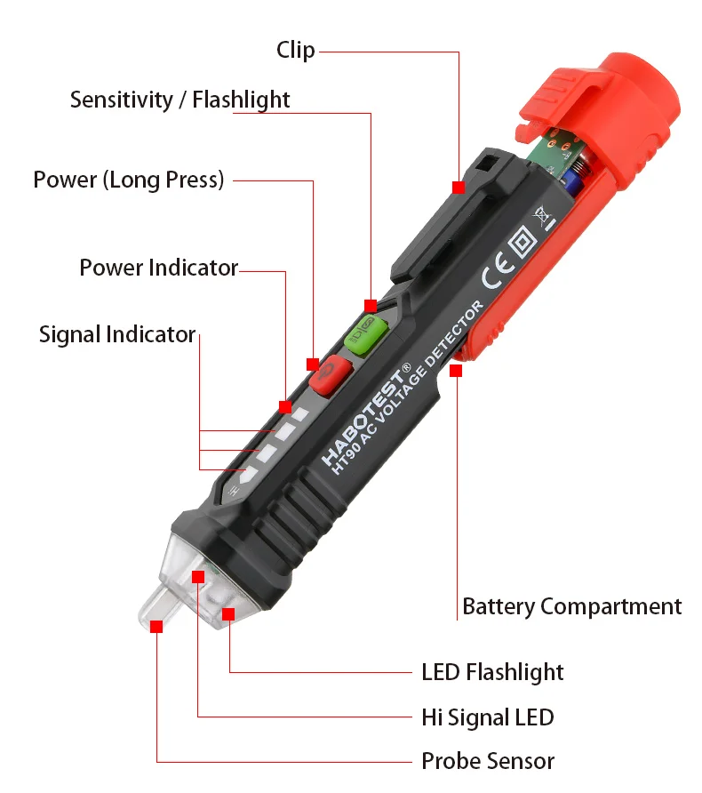 Фаза Вращающаяся ручка тестер напряжения детектор Live Null провода проверки электрическое инструменты