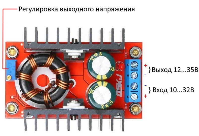 Повышающий DC-DC преобразователь, вход 10…32В, выход 12…35В, регулируемый