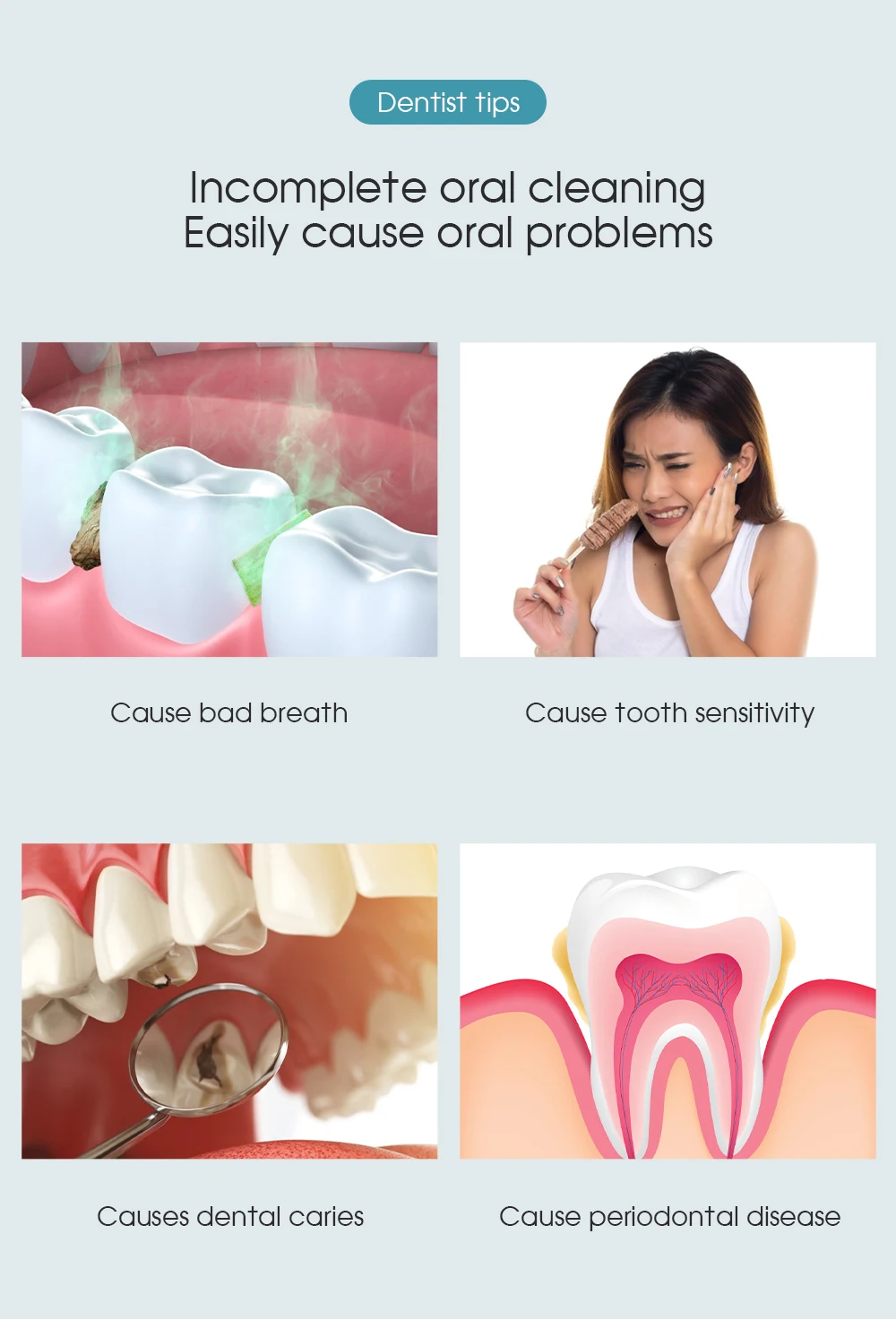 ● Перед лицом различных стоматологических проблем, вы выбираете правильные инструменты для ухода за полостью рта, для различных стоматологических проблем, начиная с ежедневной чистки полости рта.