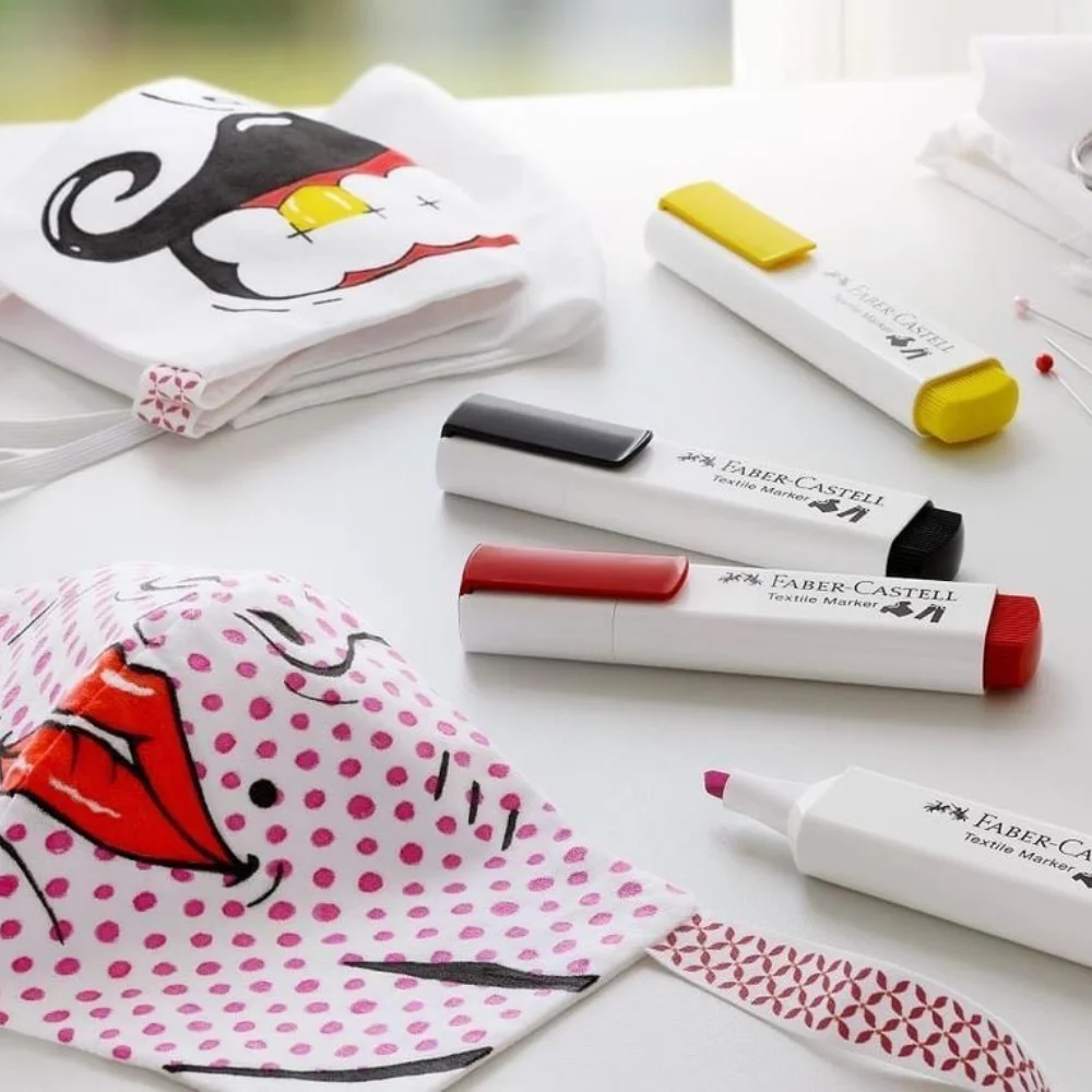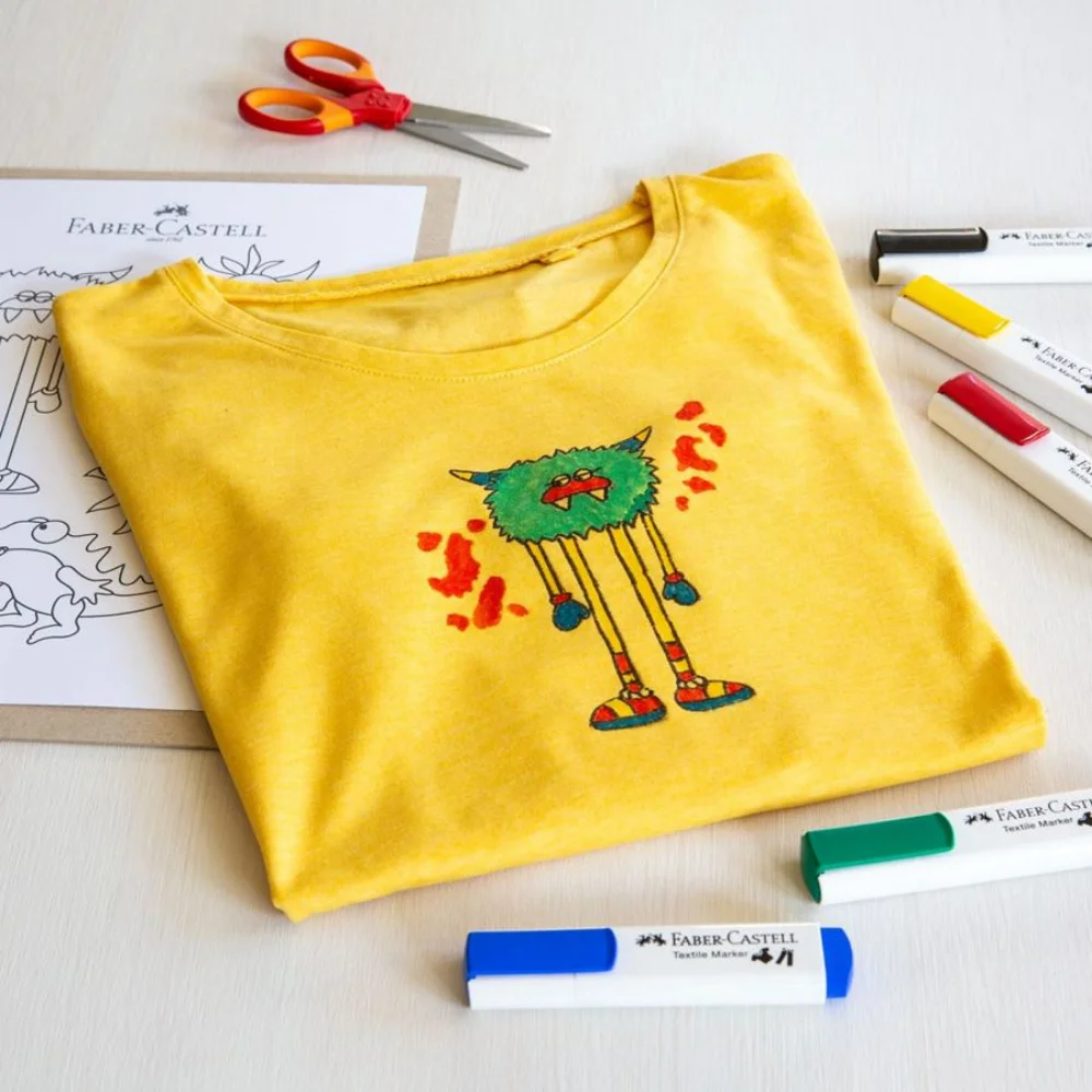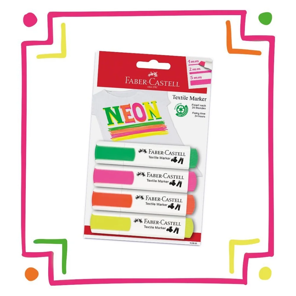 Textile Marker, 5 colours and Textile Marker Neon these textile markers are suitable for a range of fabrics and projects: from cotton bags to T-shirts to interior fabrics for the nursery. The colours are automatically fixed after 24 hours or after ironing. Ideal for little textile designers or individual gifts.