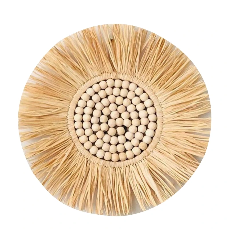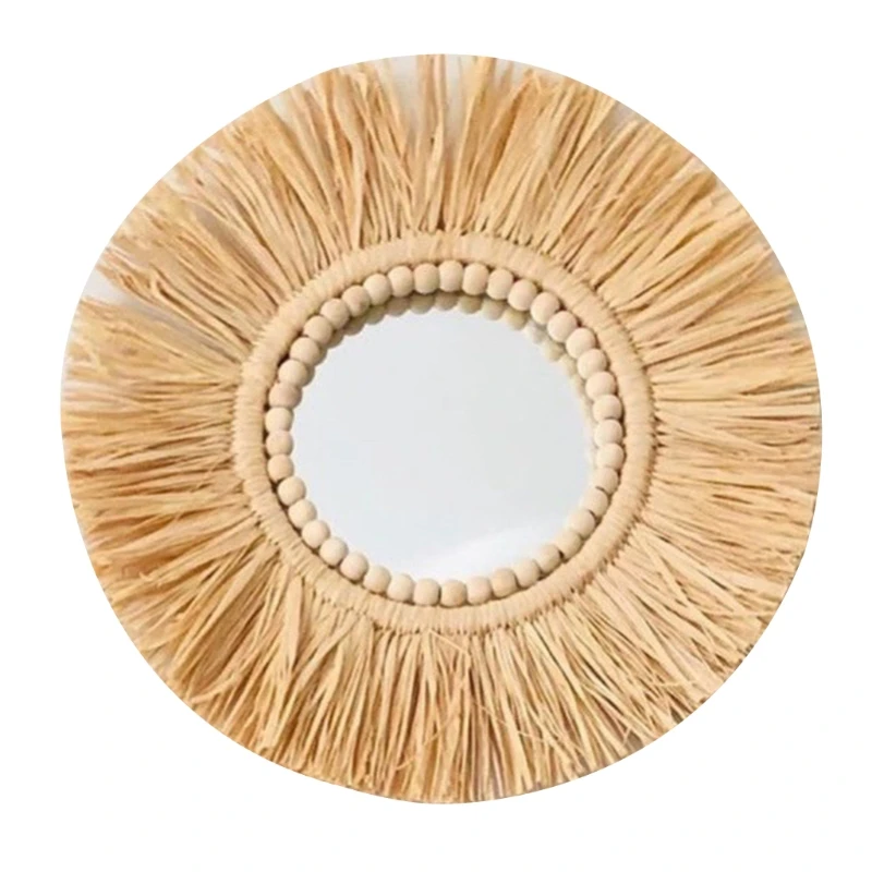 Марокканский из плетеной соломы висит настенное зеркало в стиле «Бохо Плетенный, макраме деревянные бусины макияж зеркало гобелены домашний Спальня украшения