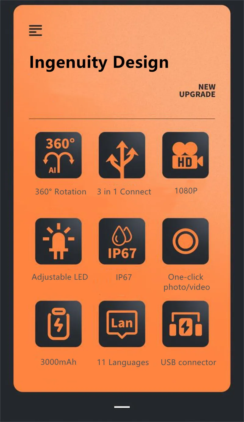6. Водонепроницаемая Головка камеры и кабель соответствуют стандарту IP67 для просмотра изображений и видео непосредственно на вашем мобильном телефоне.