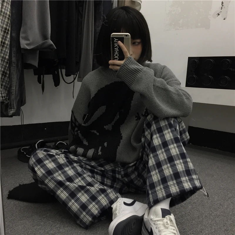 Женский свободный вязаный свитер с мультяшным дельфином Повседневный пуловер
