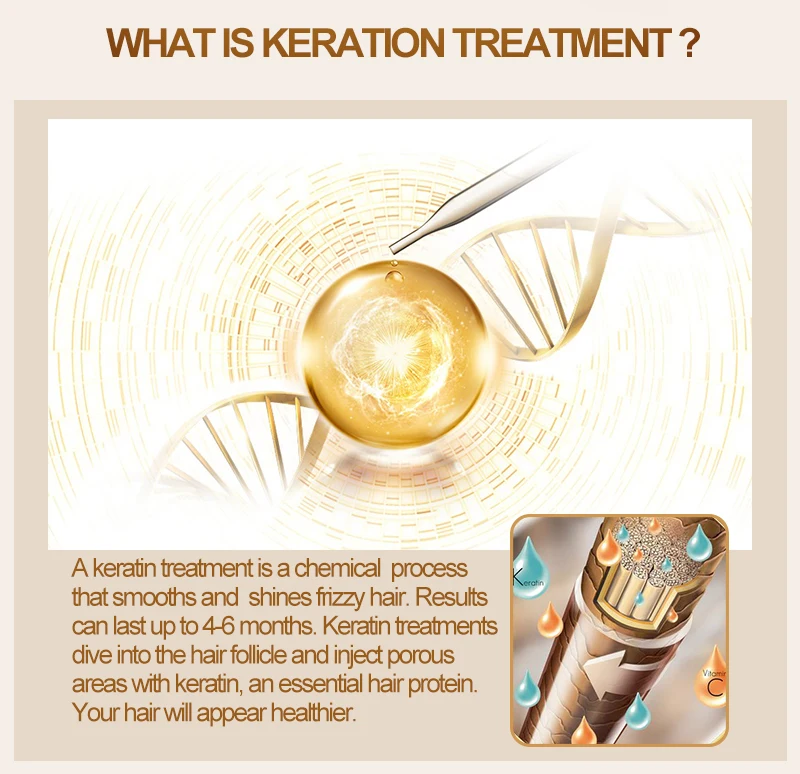Кератиновое лечение погружайтесь в волосяной фолликул и вводите пористую область с кератином и эфирным белком для волос. Ваши волосы будут выглядеть более здоровыми.