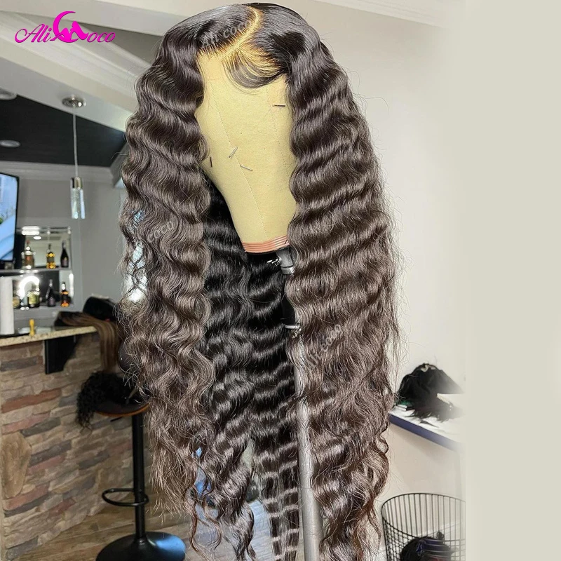 Али Коко оранжевый имбирь красный глубокая волна человеческие волосы парики фронта шнурка бразильские Remy глубокая волна парики предварительно выщипанные 5x5 человеческие волосы парик